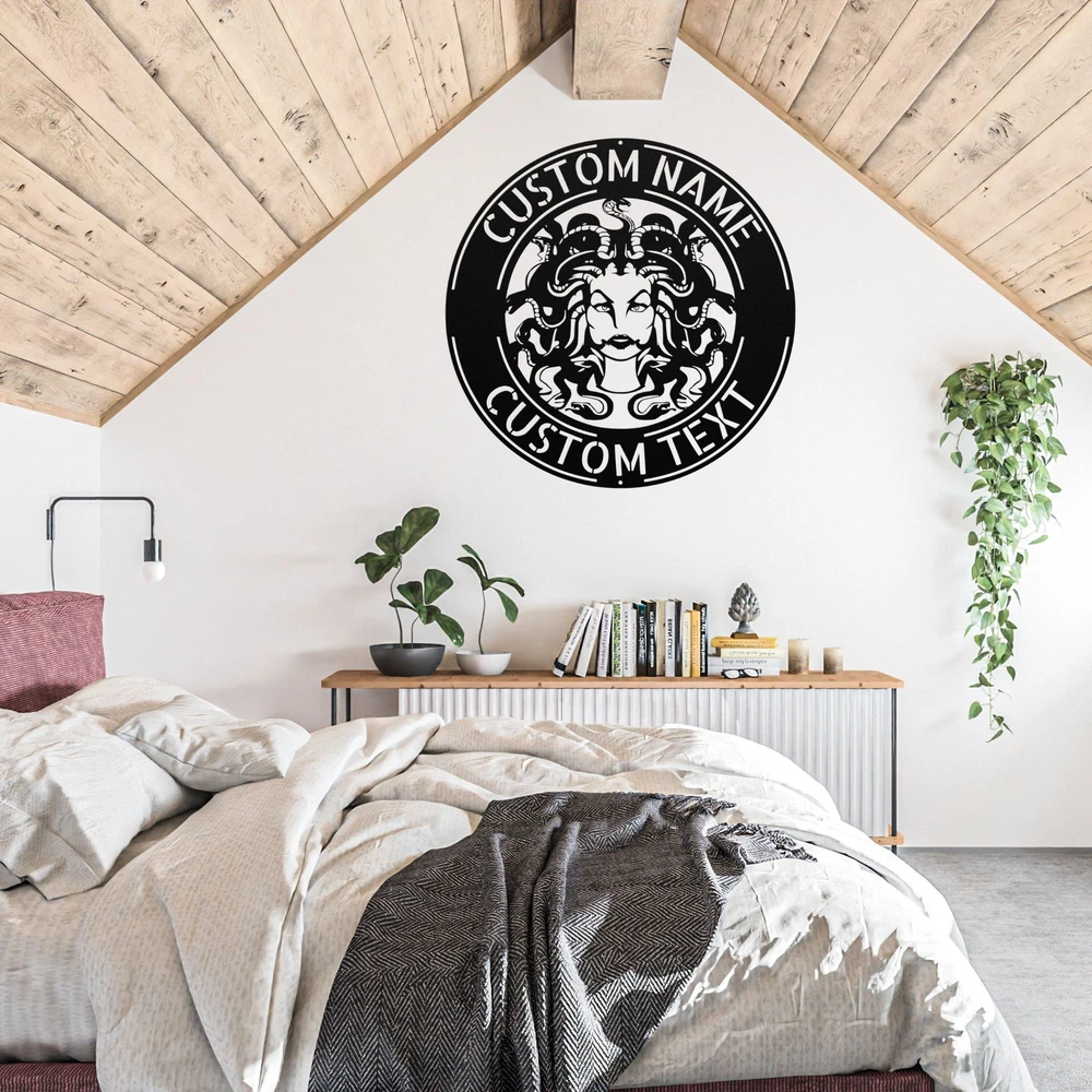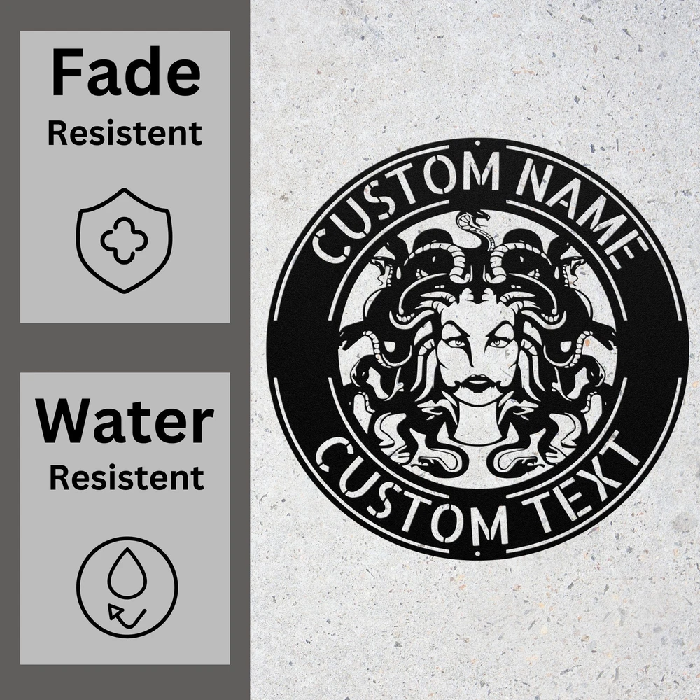 Product Description Custom Woman with Snakes Metal Sign Wall Art for Home Man Cave Mythology Fans Make a bold statement with this Custom Woman with Snakes Metal Sign , a striking piece of wall art that combines fantasy and mythology in one captivating design. Perfect for home, man caves , or as unique decor , this personalized metal sign adds character and intrigue to any space. Crafted from high-quality 16-gauge laser-cut metal and finished with a durable powder coating , this piece is designed to last, whether displayed indoors or outdoors. The powerful image of a woman with snakes evokes themes of strength, mystery, and mythological symbolism, making it a great fit for fans of Greek mythology, fantasy, or gothic decor . You can customize this sign with a name or special message , making it an extra special touch for your space or as a gift. This versatile sign works beautifully in rustic, modern, or alternative styles and makes a fantastic gift for fantasy lovers, mythology enthusiasts, or anyone who appreciates unique and personal artwork . Ideal for birthdays, special occasions, or as a bold gift for the adventurous spirit . Key Features: Durable Quality: Made from sturdy 16-gauge laser-cut metal Weather-Resistant Finish: Powder-coated for both indoor and outdoor use Mythological Design: Depicts a powerful woman with snakes, perfect for fantasy or mythology fans Personalized Touch: Add your name or a custom message for a unique, personal gift Versatile Decor: Great for home, man caves, or unique decor settings Bring mythical strength and stunning artistry to your space with this Custom Woman with Snakes Metal Sign —a unique and personalized addition to your home or a thoughtful gift for someone special. Service and Color Choice Our metal signs are designed to be personalized just for you, making them the perfect addition to any space! The default color for our signs is Black , but we also offer a variety of beautiful options including Copper, Gold, White, and Silver . After placing your order, simply contact us with your preferred color choice, and we'll ensure your sign is exactly how you envision it. Let’s create something special together!