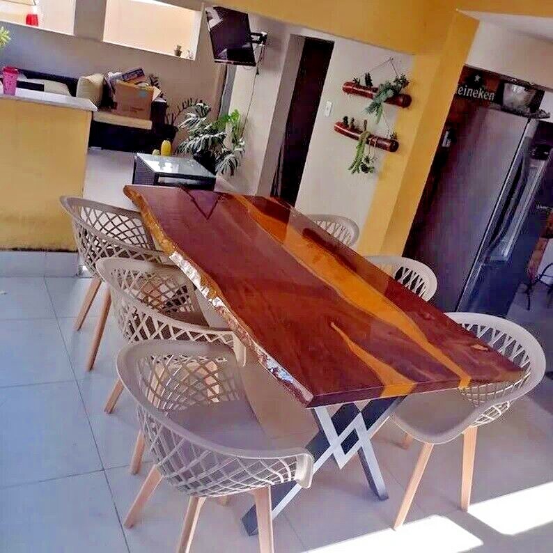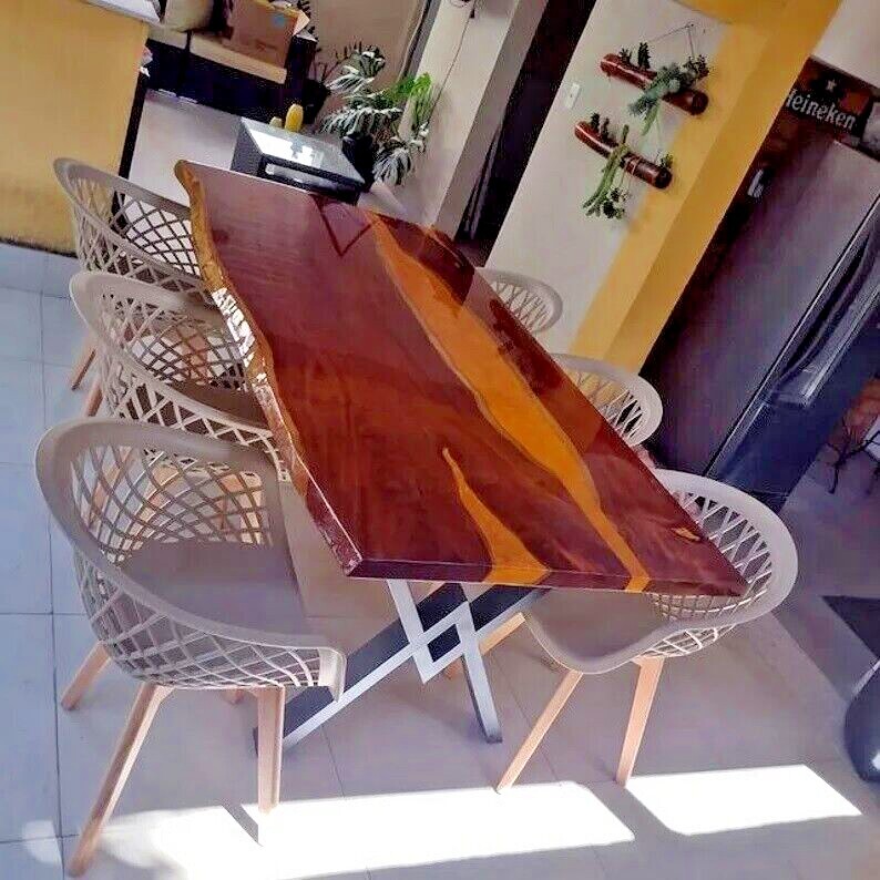 Can be Customize, Please message your desired shape and size . Epoxy Color can also change as per buyer requirement. This is a Epoxy Resin Gaming or Trading Desk made with Walnut which is beautified with colored pigment . The resin river table is brand new and the contemporary design would be a unique addition to your home. With its perfect combination of style and function this piece of furniture is sure to be the star of any room. This modern table will also make for an awesome gift for your friends or relatives. Each one is created with high quality resin and individually handcrafted. Resin is a highly reflective medium which will catch anyone’s eye walking into the room. All tables are finished to the highest standard. The epoxy resin is very strong & durable with specialised UV resistance. The tables are delivered flat packed. Simply bolt the legs. This listing is for a custom Live edge Wooden Table. We have access to thousands of live edge slabs of domestic and exotic species that are imported from around the globe. We use only the highest quality of hardwoods and materials in our work, and believe only in perfection. Kindly Note: As raw wood is used in its natural form and shape to make the table, the table shown in the photos has already been purchased so actual product may vary from the picture shown. Kindly Note: Any accessories/Chairs / Bench and legs shown in picture NOT included in given prices. if you want legs then you are to pay spare money. Please contact me if you have any kind of query. Kindly Note: Please contact me if you have any kind of query.Buyers are liable for any customs and import taxes that may apply. I'm not liable for delays due to customs. Buyers are liable for any customs and import taxes that may apply. I'm not liable for delays due to customs.
