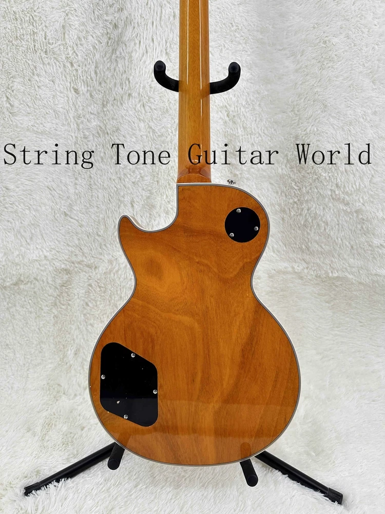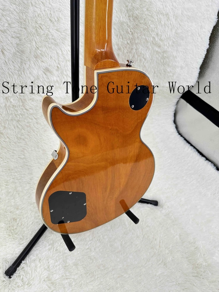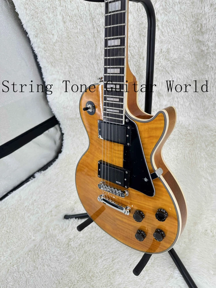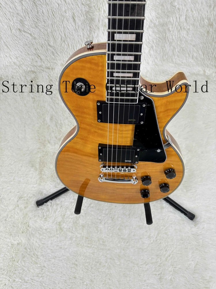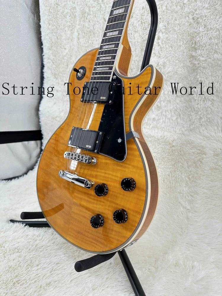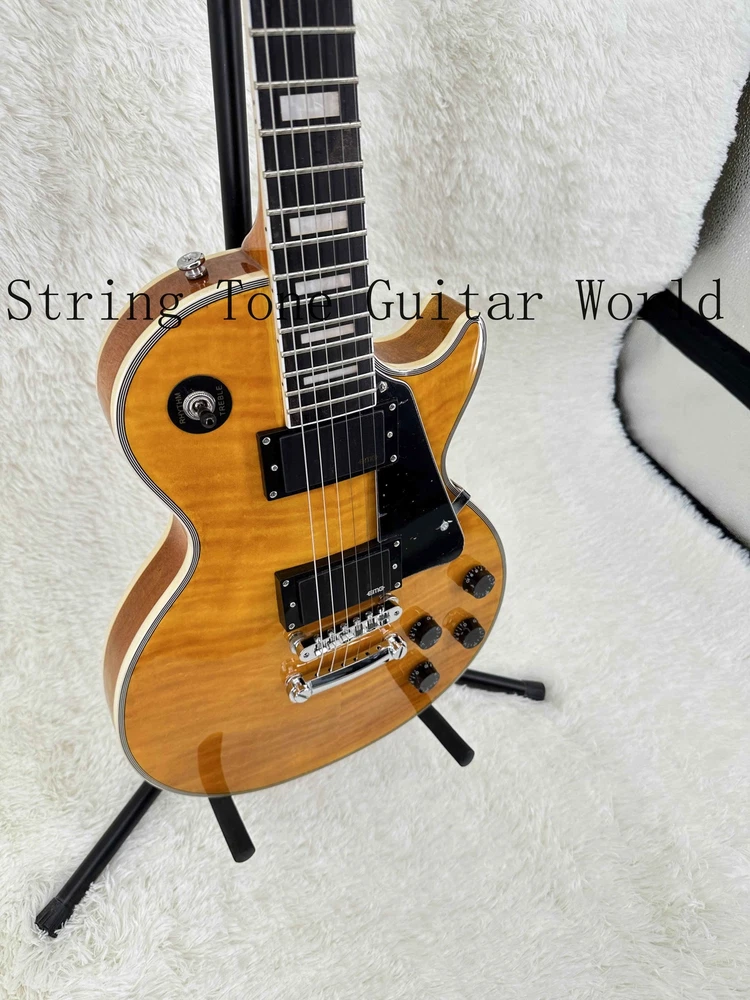 Custom Yellow LP Electric Guitar Black Pickguard Fixed Bridge Chrome Hardware