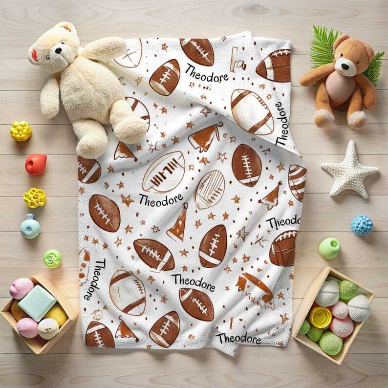 Custom personalized Baby blanket Printed rugby Baby Name Blanket soft Bedding