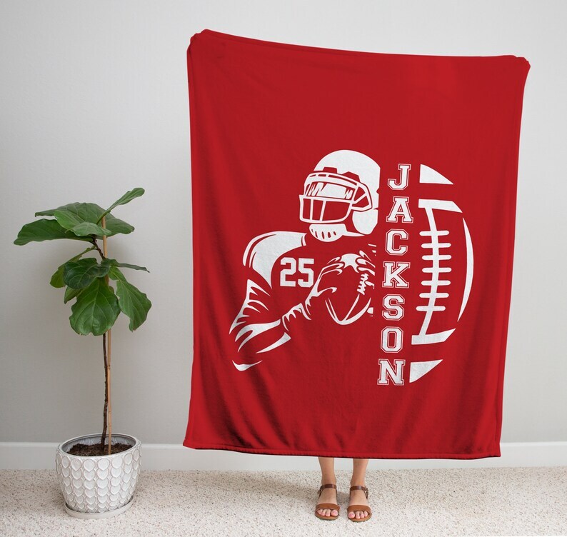 Custom personalized Football blanket Printed Name and Number holiday gift