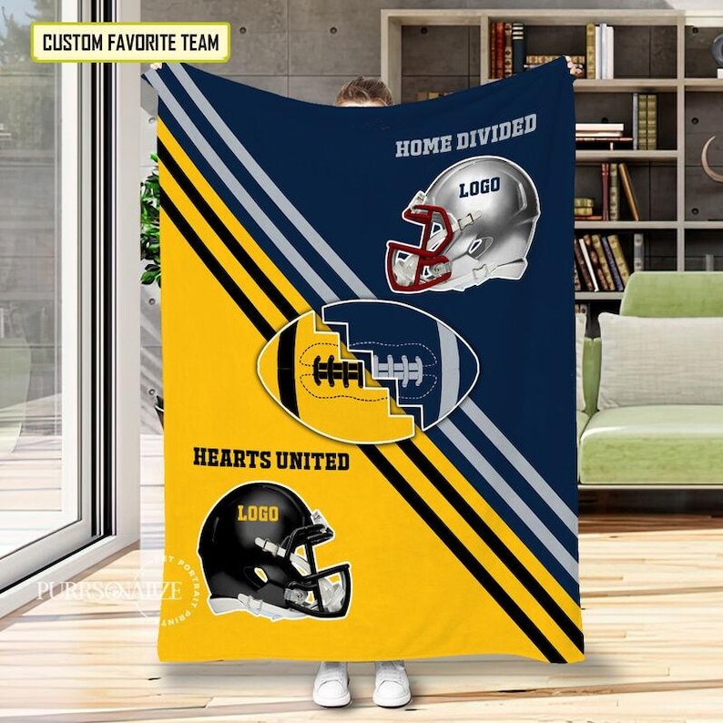Custom personalized blanket Printed Football House Divided Hearts United Bedding