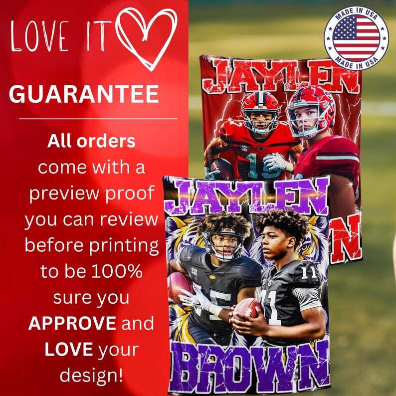 Custom personalized blanket Printed Football player Name and Number Bedding