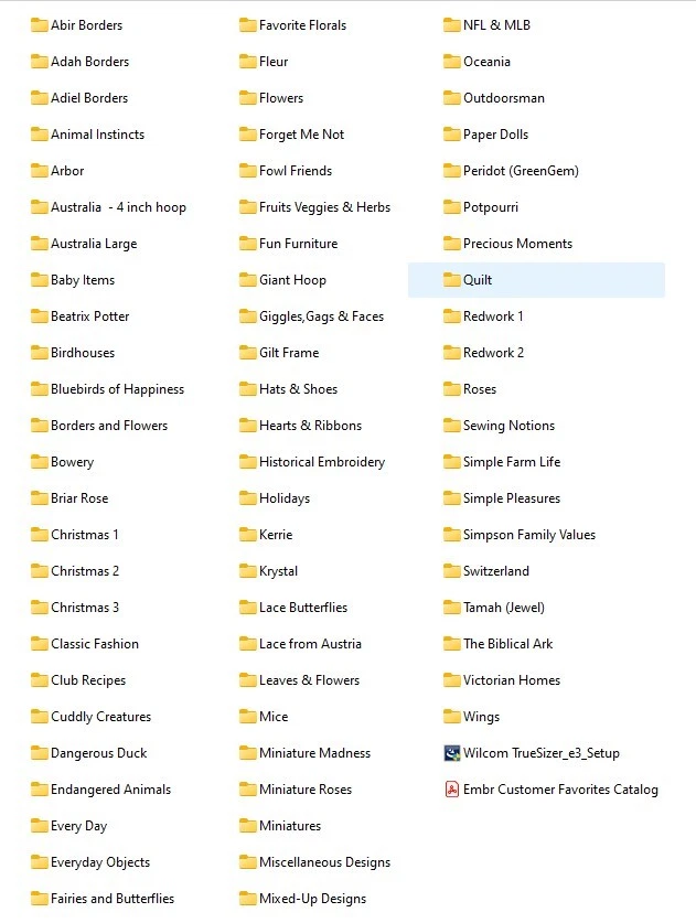 Embroidery Customer Favorites Machine Embroidery Designs Over 4,200 Designs All on one CD or USB Drive Now Including A PDF File Containing Colorchart/Sewing Information on Every Design Free Full-Featured Viewer/Sizer Program Free Shipping To U. S. & Puerto Rican Buyers Now Selling In Canada, United Kingdom, Ireland, New Zealand, and Australia Available in your choice of DST, EXP, HUS, JEF, PCS, PES, SEW, VIP, VP3, and XXX embroidery formats to fit your embroidery machine (ART not available). * * * Attention: Please read the following description carefully. By clicking Buy or bidding, you are entering into a contract subject to the conditions within. * * * This is a set of designs regularly selected by embroidery shop customers for their custom blouses, shirts, and dresses. This set contains a mixture of everything from Birdhouses to Borders to Houses to Christmas, with some Threatened Animals, Biblical Ark, Quilts, and Lace designs tossed in. It contains over 4,200 machine embroidery designs. Check out the pictures for some of the designs. Picture 5 contains a list of the 70 subject folders included. INTERNATIONAL BUYERS: I now sell in Canada, United Kingdom, Ireland, New Zealand, and Australia. Use the Ebay Postage Calculator to determine the extra postage for your location. The designs are mostly sized to fit a 4x4 hoop with a few sized for a 5x7 hoop. The included resizer program can be used to resize the designs to fit your required hoop, as necessary. The resizer program can also be used to rotate, mirror, and transform your designs since it is a full-featured program. You will receive the designs on either a CD or a USB drive. The designs will consist of one complete set of designs in the embroidery format of your choice (ART is not available). A viewer/sizer program will also be included. Designs will be mailed within three business days to your Ebay mail address. Please make sure that it is correct in Ebay. You may need an appropriate program and card writer hardware to write the design files to a blank embroidery card to get the files into your embroidery machine. For those with a USB port on your embroidery machine, transfer of the design files from the CD to a USB flash drive or directly to your embroidery machine can be easily accomplished using your Windows computer. All media are checked on two different computers before they are packaged to ensure that they were copied correctly and will open on your Windows computer. No refunds! These are easily copyable computer files. A new media will be sent in exchange if something is wrong with your returned media. Please message me with any problems before leaving feedback. When you get your media, check it immediately. If anything is wrong with it, let me know. When you find that your media is okay, immediately copy it to your hard drive. Then take your media, put it in the protective sleeve, put that back in the bubble envelope, and lock it away in a safe location. The media you are buying is guaranteed to work when you receive it and for 7 days thereafter (more than enough time for you to copy it to your hard drive). After that, don't contact me for a replacement. If something happens to your hard disk copy, just remove your media from safe storage and recopy it to your hard drive. It will work like brand new. Then lock the protected media away again in case you need it. By buying from this auction, you state that you understand this policy. Return Policy - Since I test each media before I ship it, I am rarely asked to allow the return of design media. However, a recent problem with a buyer over a DVD requires me to spell out my Return Policy in detail. Ebay allows sellers to have a Return Policy separate from the standard Ebay policy. Mine is as follows: You return the nonworking media to me at your expense (it currently costs me about $4 for postage to mail the media to you). I check the media on my computer when I receive it. If there is a problem with the media, I will send you a new media, pay for your postage, and send you a heart-felt apology. If the media is good, I let you know and ask you what you want done with your working media. If you want it back, you will have to pay for postage. This way the buyer gets the designs they paid for and is not out any additional money. I don't give refunds - just replacement designs. When I first started selling on Ebay, I took returns through the Ebay Return System. However, I found that people were buying the disks, copying them to their hard drives, claiming that they were "bad", and returning the "good" disks to me at my cost. I quickly saw that I was being taken advantage of and changed my Return Policy to the one described above. If you buy the designs, I will make sure that you get a working media with working designs. By bidding on this auction or clicking on "Buy It Now", you confirm that you understand this policy and agree to it. If you do not agree to this policy, PLEASE DO NOT BUY. Know your machine's required design format before you buy. If you order the wrong media or the wrong format, that is what I am sending. A different media or a different design format is available from my auctions at an additional cost. There are no exceptions. You can ask me for a recommendation on the media and embroidery format based on your embroidery machine model, but you are still responsible for the media and format you order. The designs on this media were made from public-domain clip art, original art work, and/or original images generated from the Microsoft Co-Pilot AI program. They were converted to embroidery machine instructions using digitizer programs such as Hatch 3, Brother's PE Design, and Embrilliance Enthusiast. I am the licensed owner of these embroidery programs. I personally created each design in your embroidery format. You may use the machine instructions on this media for your own personal use or to embroider items for resale. You may not give away, distribute, or sell