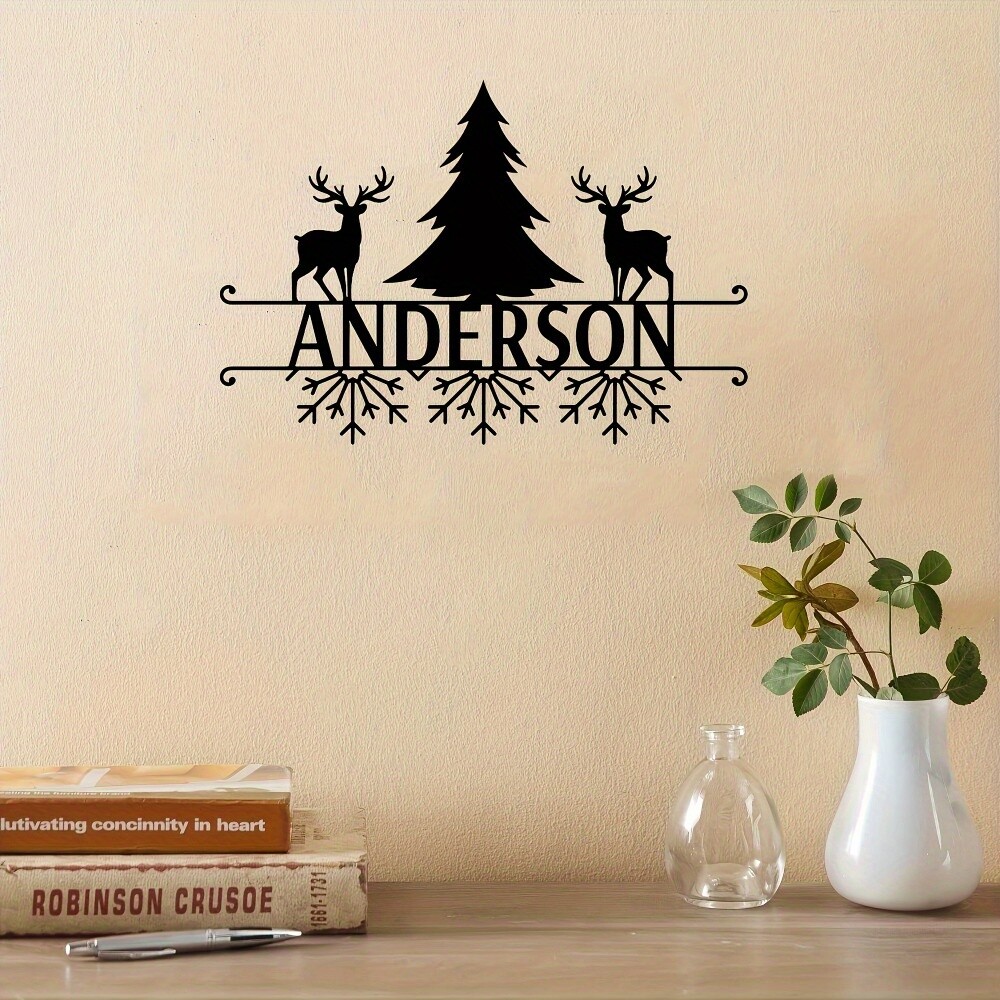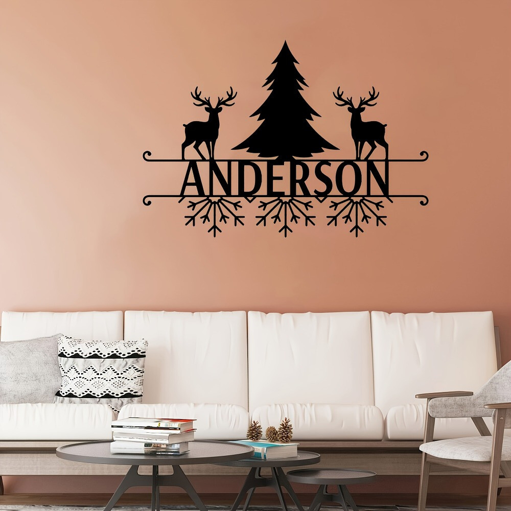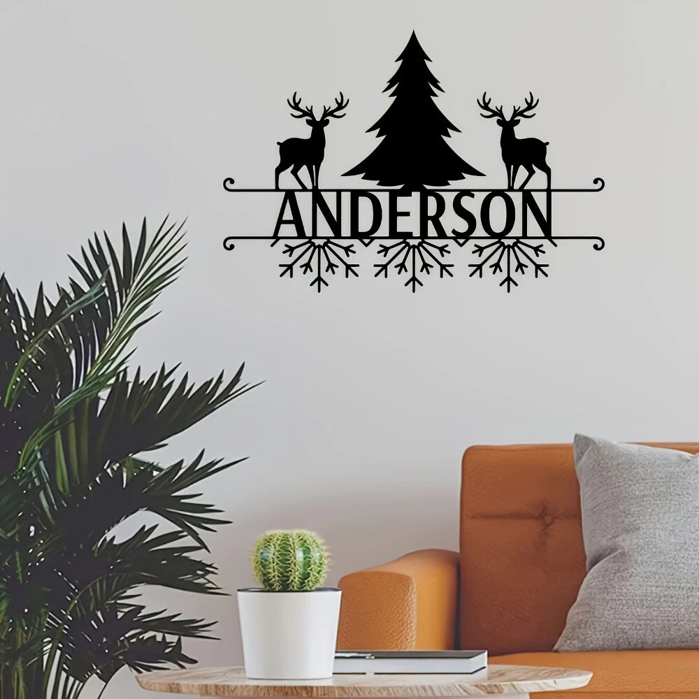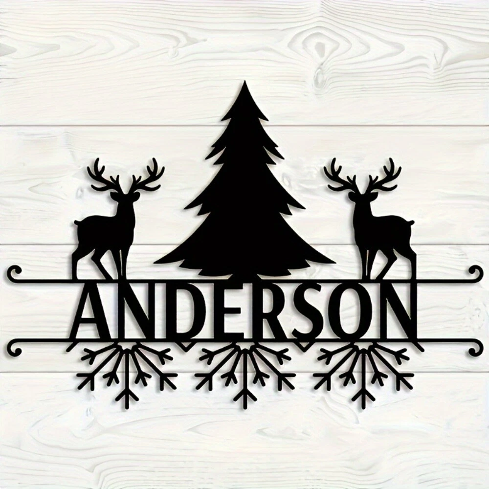 Customizable Art Deco Metal Wall Art with Deer & Tree Design