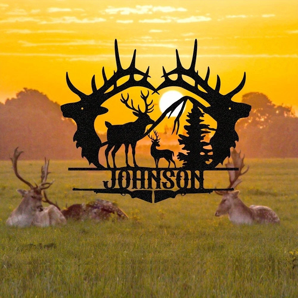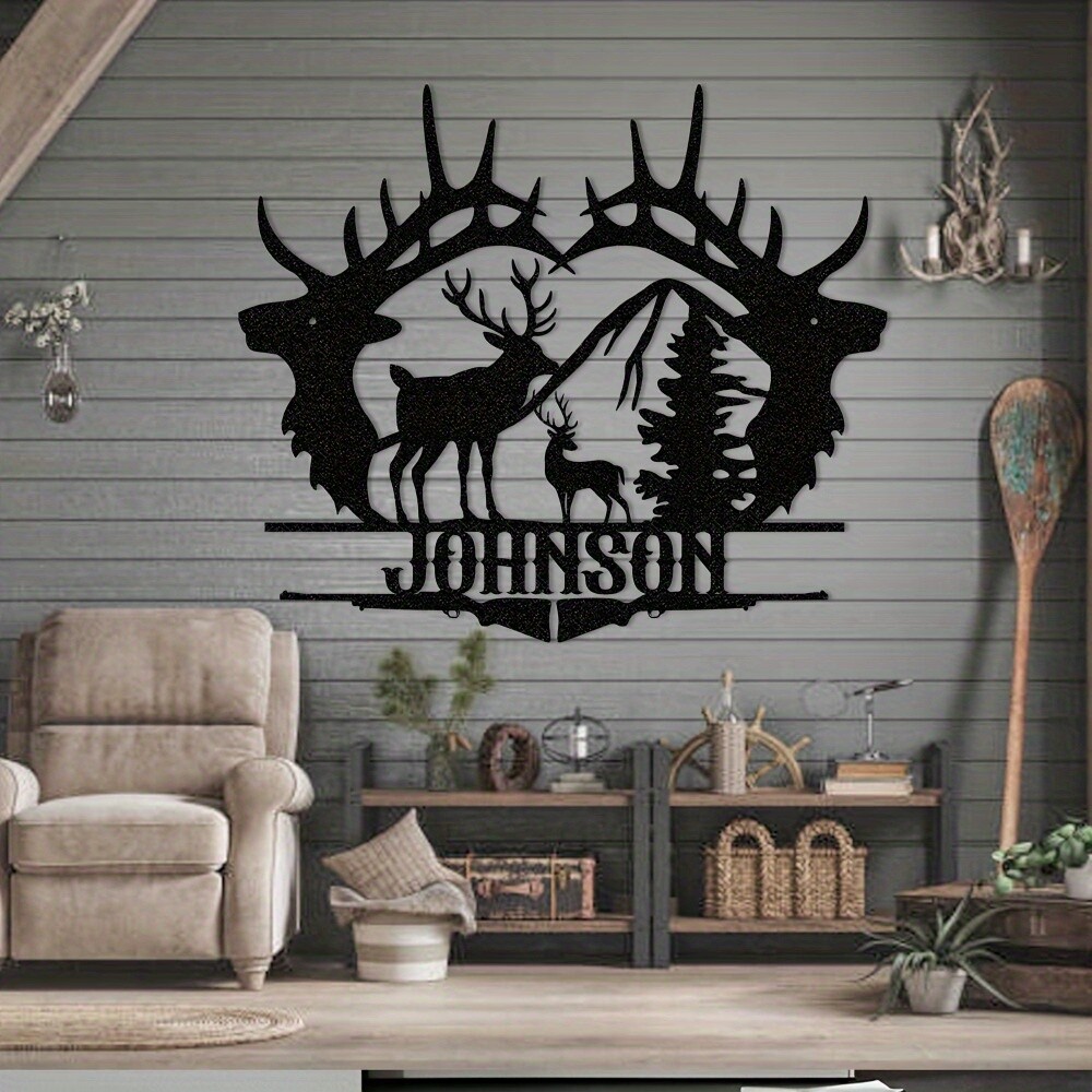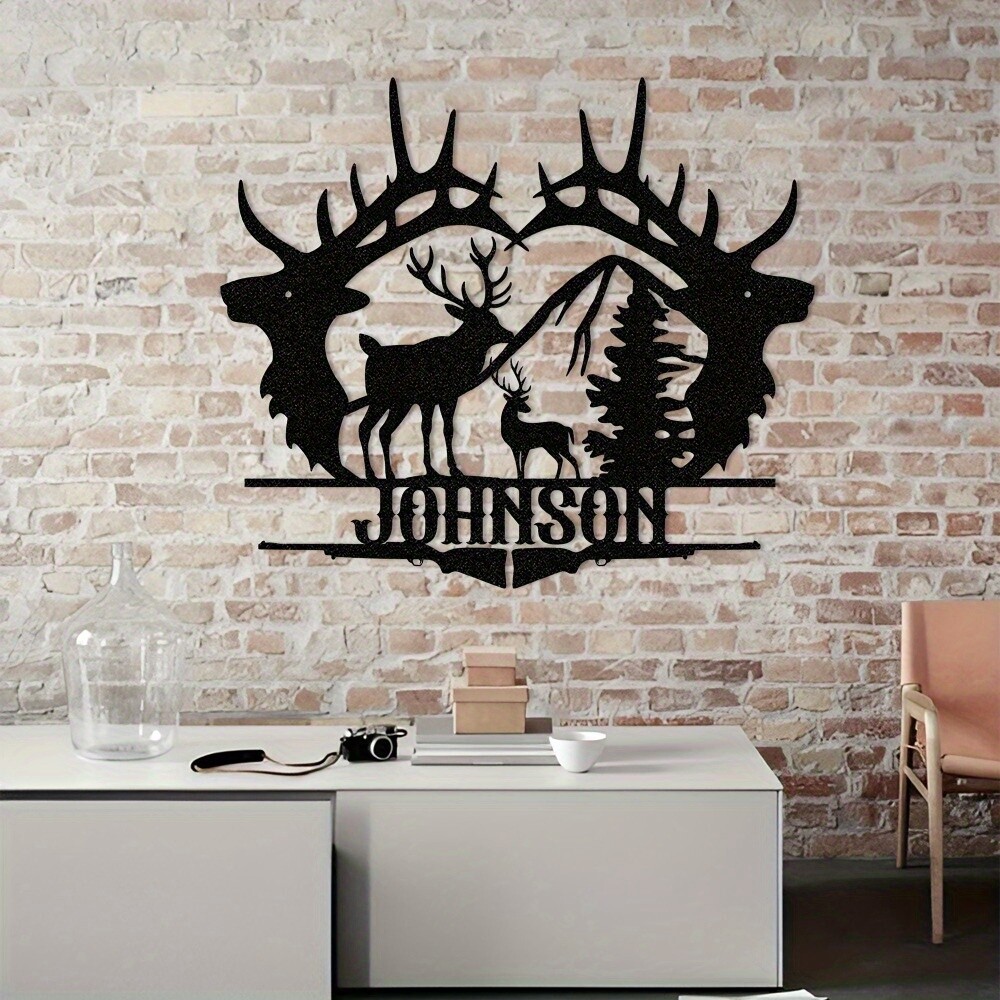 Customizable Art Deco Metal Wall Decor with Personalized Deer Outline