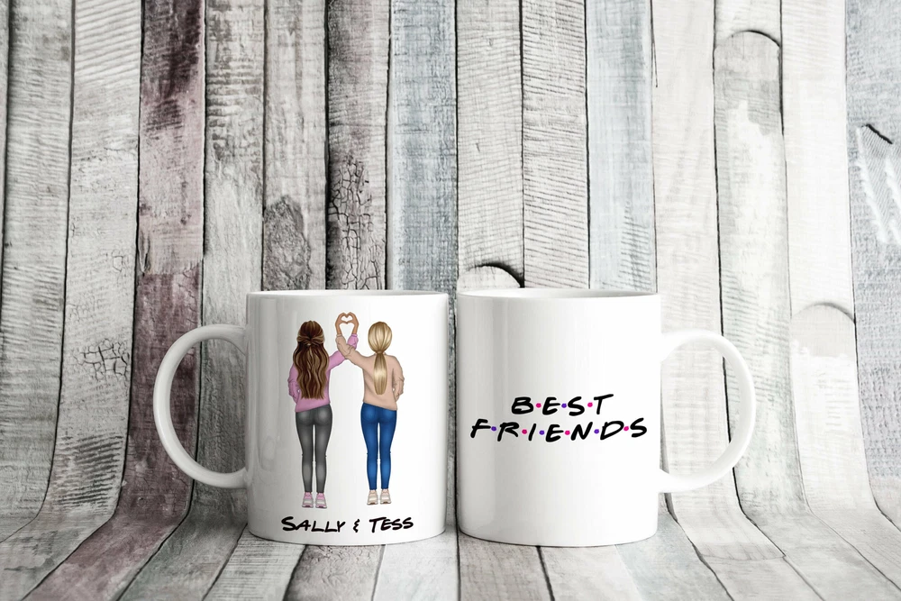 Customizable Best Friends Mug Heart Besties Mug Gift Bff Gift Product Details.. This high quality 11oz. ceramic white mug has a premium hard coat that provides crisp and vibrant color reproduction sure to last for years. Perfect for all hot & cold beverages. The highest quality printing possible is used. It will never fade no matter how many times you wash it. Material: 100% Ceramic. Print both sides. Dishwasher and Microwave Safe. High Gloss + Premium White Finish. Printed in the U.S.A. Personalized & Custom. We support personalized and custom mug to add custom, when placing an order, you can add notes to the "order note" in shipping address section. Also you can contact us directly via message. Shipping Info. Ready to ship in 1 to 2 business days, All products are made-to-order and proudly printed in the United States. Shipped by USPS and DHL, You will receive your order in 5-7 days. Replace & Refund. All products are defective during shipping broken, chipped will be replaced free of charge. You are not satisfied with the product, we will refund 100% money to you. If any other issues arise, please do not hesitate to message, we would be more than happy to assist you.