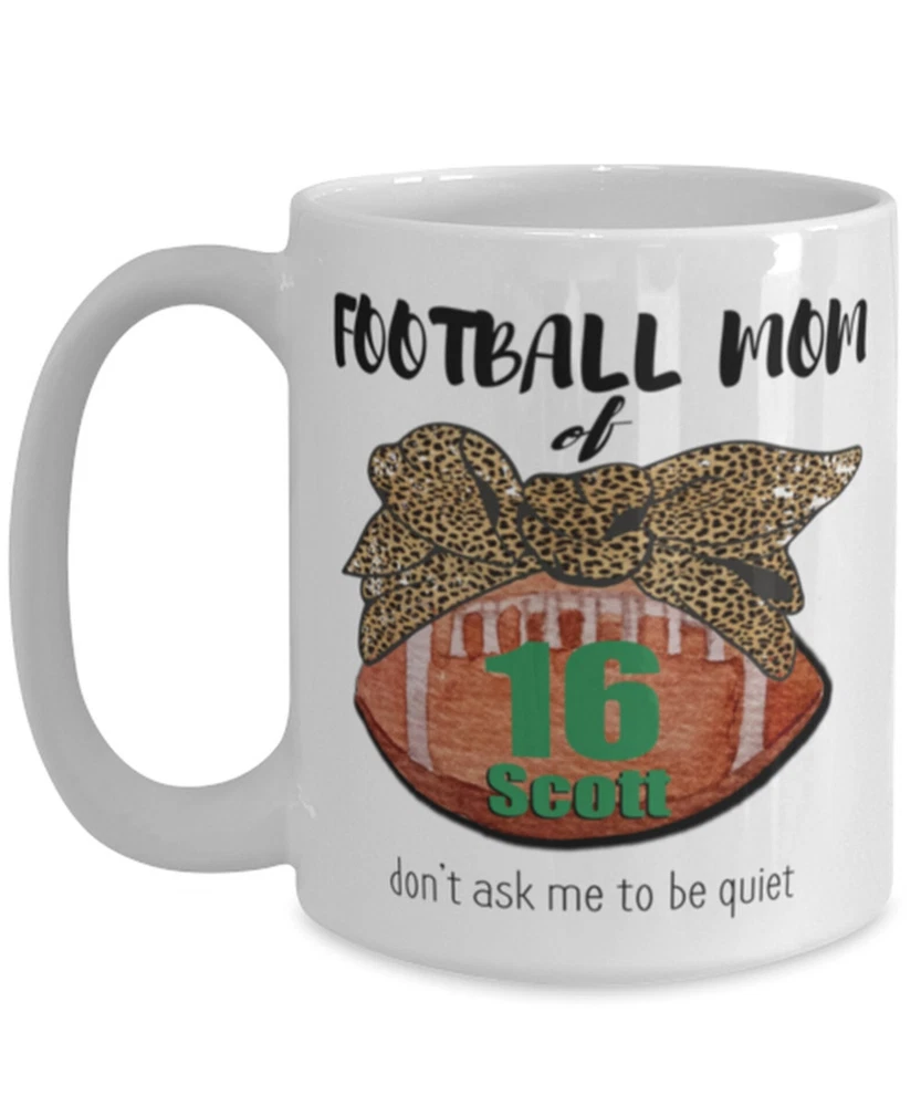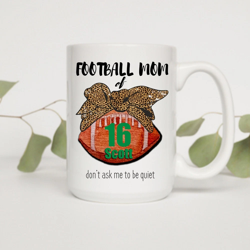 Customizable Football Mom Mug Football Mug Mom Mug Football Mom Coffee Mug Product Details.. This high quality 11oz. ceramic white mug has a premium hard coat that provides crisp and vibrant color reproduction sure to last for years. Perfect for all hot & cold beverages. The highest quality printing possible is used. It will never fade no matter how many times you wash it. Material: 100% Ceramic. Print both sides. Dishwasher and Microwave Safe. High Gloss + Premium White Finish. Printed in the U.S.A. Personalized & Custom. We support personalized and custom mug to add custom, when placing an order, you can add notes to the "order note" in shipping address section. Also you can contact us directly via message. Shipping Info. Ready to ship in 1 to 2 business days, All products are made-to-order and proudly printed in the United States. Shipped by USPS and DHL, You will receive your order in 5-7 days. Replace & Refund. All products are defective during shipping broken, chipped will be replaced free of charge. You are not satisfied with the product, we will refund 100% money to you. If any other issues arise, please do not hesitate to message, we would be more than happy to assist you.