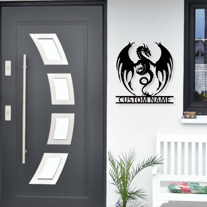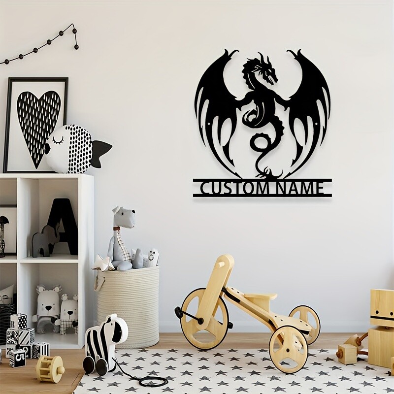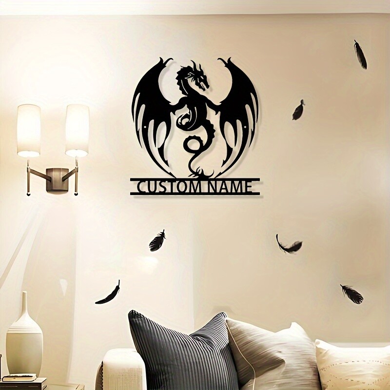 Customizable Reusable Art Deco Metal Flaming Dragon Wall Sticker Detachable Design