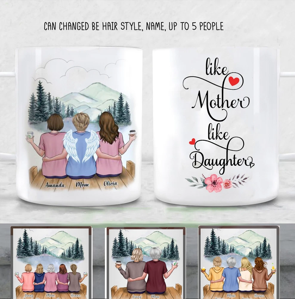 Customize Like Mother Like Daughters Mug Personalized Mother's Day Gift Mug Product Details.. This high quality 11oz. ceramic white mug has a premium hard coat that provides crisp and vibrant color reproduction sure to last for years. Perfect for all hot & cold beverages. The highest quality printing possible is used. It will never fade no matter how many times you wash it. Material: 100% Ceramic. Print both sides. Dishwasher and Microwave Safe. High Gloss + Premium White Finish. Printed in the U.S.A. Personalized & Custom. We support personalized and custom mug to add custom, when placing an order, you can add notes to the "order note" in shipping address section. Also you can contact us directly via message. Shipping Info. Ready to ship in 1 to 2 business days, All products are made-to-order and proudly printed in the United States. Shipped by USPS and DHL, You will receive your order in 5-7 days. Replace & Refund. All products are defective during shipping broken, chipped will be replaced free of charge. You are not satisfied with the product, we will refund 100% money to you. If any other issues arise, please do not hesitate to message, we would be more than happy to assist you.