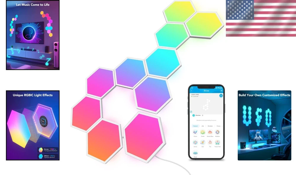 Customize Your Space with 10 Hexagon RGBIC LED Lights - Voice & App Control ‹ › ‹ › ‹ › ‹ › ‹ › ‹ › ‹ › ‹ › ‹ › ‹ › Customize Your Space with 10 Hexagon RGBIC LED Lights Transform your home aesthetics with this stunning set of 10 hexagon LED lights. Perfect for adding a personalized touch to any room, these lights offer creative control over your lighting design. Features: Customize layouts in the app or choose from a variety of recommended designs. Unique RGBIC technology allowing each edge to shine in different colors for smooth flowing and gradient effects. Translucent back shell design casts a soft glow onto your walls, enhancing visual depth. 6 Music Sync Modes make your lights dance in rhythm with your favorite songs. Rich animated effects based on nature and holidays create a vibrant, dynamic ambience. Smart App control with features like scheduling, music modes, and scene selections. Works with Alexa and Google Assistant for seamless voice control. Benefits: Personalize your living space with endlessly customizable colors and designs. Set the perfect atmosphere for gaming, gatherings, or relaxation. Elevate your décor with sophisticated lighting effects that complement any aesthetic. Sync lights with music for immersive entertainment experiences. Control your lights conveniently with your smartphone or voice commands. Why choose our Hexagon RGBIC LED Lights? Looking to elevate your home's lighting game? Our Hexagon RGBIC LED Lights offer a unique and customizable way to light up your living space. With advanced features like music syncing and versatile app controls, you can create not just illumination but an experience that reflects your personality and inspirations. Durable and easy to install, you can confidently transform your home into your own artistic haven. Don't settle for ordinary lighting - embark on your journey of creativity and innovation with our Hexagon RGBIC LED Lights today! Shipping Free & Fast Shipping - We offer free shipping to most of the USA with a normal delivery time of 3-7 days. However, due to the current situation, additional delivery time (up to 3 weeks) may be required for some items. Alternative Carriers - We may use alternative carriers (e.g. USPS, FedEx, UPS, etc.) to ensure your package arrives safely and on time. Due to the use of multiple carriers, we are unable to provide a tracking number automatically. Handling Time - Orders are processed and shipped within 1-2 business days of receiving cleared payment. Shipping Restrictions - Shipping to Alaska, Hawaii, Puerto Rico, Guam, and other US territories may incur shipping charges or delivery restrictions. Please contact us before ordering, or your order can be refunded/cancelled. State Restrictions - There may be restrictions based on your state of purchase. For example, certain items may not be shipped to California due to state regulations. Contact for Tracking Updates - If you require tracking updates or have any concerns about the delivery of your order, please feel free to contact us, and we will be happy to assist you. Return 30-Day Hassle-Free Returns - We want you to be completely satisfied with your purchase. If you are not, you can return the item within 30 days of receiving it for a full refund or exchange. Easy Return Process - To start a return, simply contact us and we will provide you with a prepaid return shipping label and detailed instructions. Restocking Fee - There are no restocking fees for returns. However, the buyer is responsible for return shipping costs if the return is not due to a seller's error. Refund Processing Time - Refunds will be processed within 5 business days of receiving the returned item in its original condition. Payment We accept all major credit cards, PayPal, and Apple Pay for your convenience. Your payment information is secure and encrypted to ensure a safe and seamless transaction. Please complete your payment within 3 days of purchase to avoid any delays in shipping. Feedback Your feedback is extremely important to us. We strive to provide the best products and customer service possible. If you are satisfied with your purchase, please take a moment to leave us a positive review. If you have any concerns or issues with your order, please contact us before leaving negative feedback. We are committed to resolving any problems and ensuring your satisfaction. Contact Us If you have any questions or concerns, please feel free to reach out to our customer support team. You can contact us through the eBay messaging system. We are available Monday to Friday, 9:00 am to 5:00 pm EST, and we will do our best to respond to your inquiry within 24 hours. Thank you for supporting our small family business! UPC: Not Set Size: 10 panels Item Height: Not Set Lumens: Not specified Power Consumption: 36 watts Unit Quantity: 10 Occasion: Multipurpose Features: RGB,diy mode,40 scene modes,6 music modes,voice control,rgbic light effects Light Color: RGBIC Control Style: App Control,Voice Department: Kids,Teens,Adults Theme: Not Set Room: Bedroom,Living Room,Game Room Material: Plastic Character: Not Set Labels & Certifications: Not Set Brand: Unbranded Type: Spot Light Lighting Technology: LED Light Shape: Hexagon Installation Area: Indoor Sensor Type: Not specified Color: RGBIC Power Source: AC/DC Cord Color: Not specified Number of Settings: None specified LED String/Strip Type: Not applicable Energy Star: Not Set MPN: Not Set EC Range: Not Set Voltage: 120 volts (ac) LED Chip Code: Not applicable Output Voltage: Not specified Manufacturer: Not Set Character Family: Not Set IP Rating: Not water resistant Amperage: Not specified Number of Lights: 10 Country/Region of Manufacture: Not Set Style: Creative Color Temperature: Not specified Bulb Life Hours: Not specified Model: Not Set Unit Type: Unit