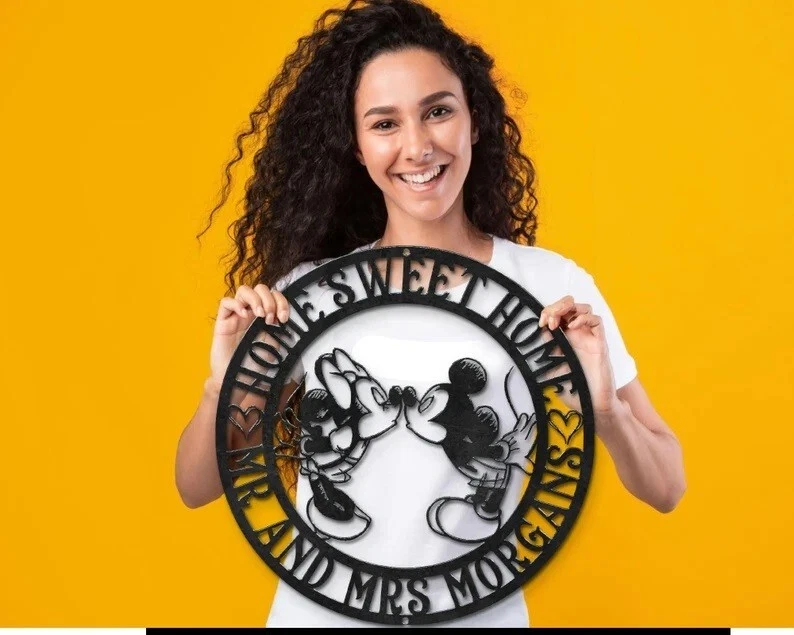 Customized Mr and Mrs Metal Sign, Disney Mickey & Minnie Home Sign, Sweet Home