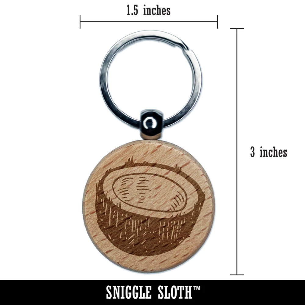 Cut Open Coconut Engraved Wood Round Keychain Tag Charm