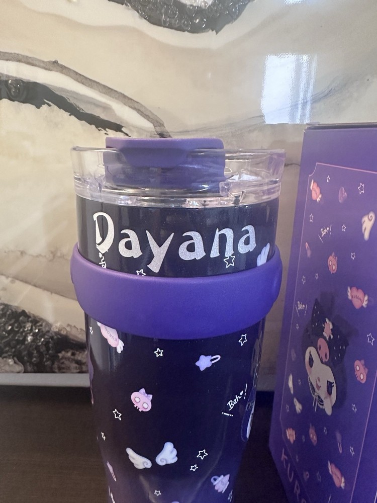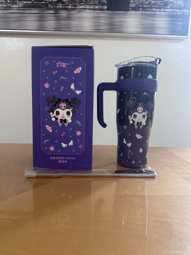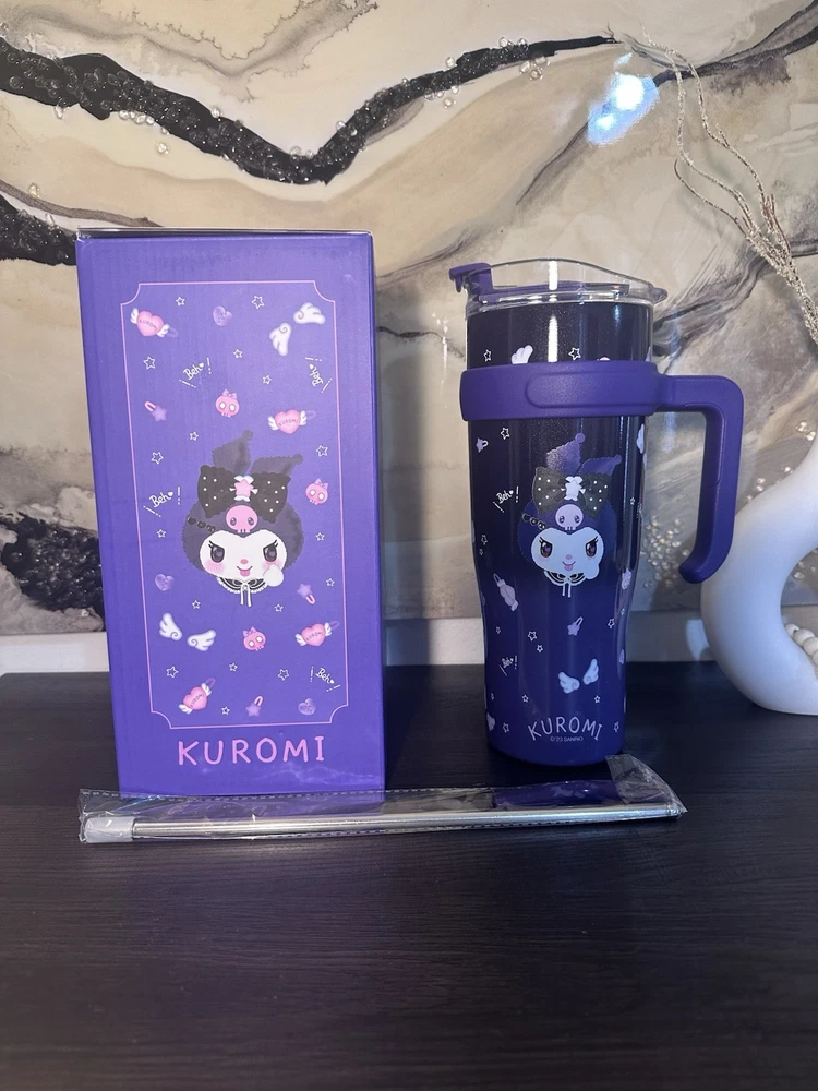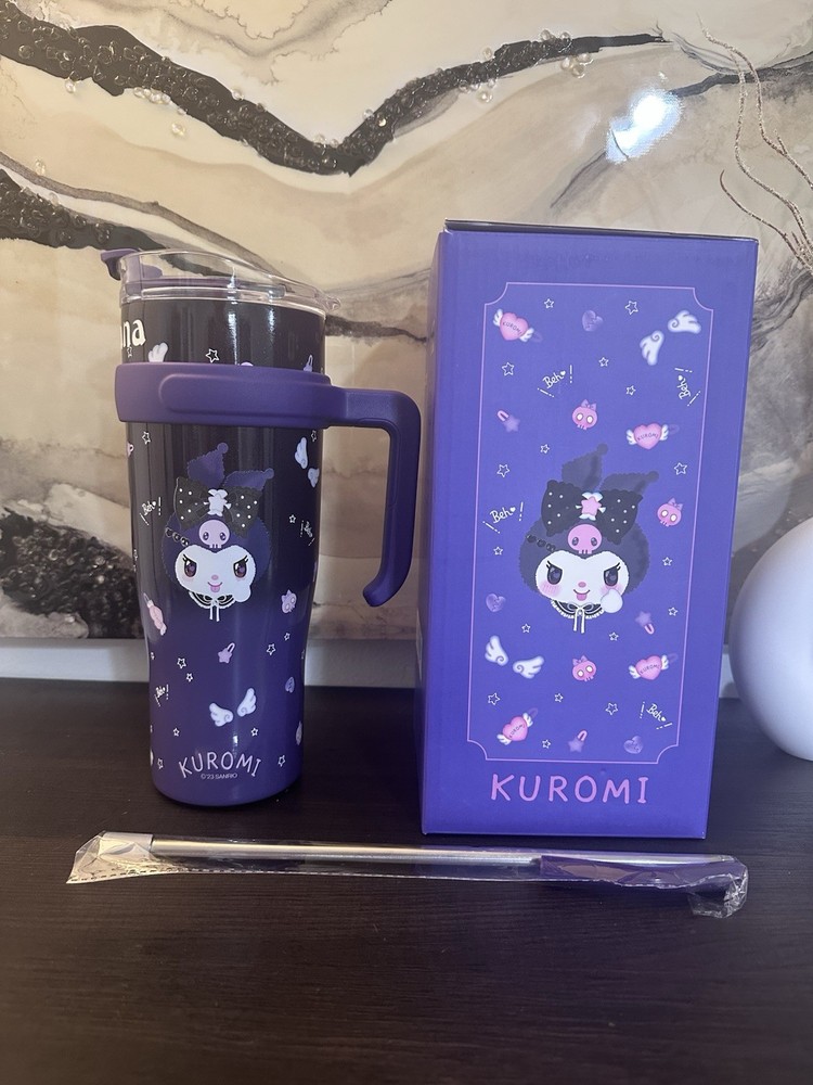 The Kuromi Drinking Big Cup is a personalized jumbo mug with a solid blue color and a cute bottle theme. This 40 oz cup comes with a cup lid and straw, making it a fun and unique gift for any occasion. Personalize it with your name to add a personal touch, and enjoy your favorite beverages in style.