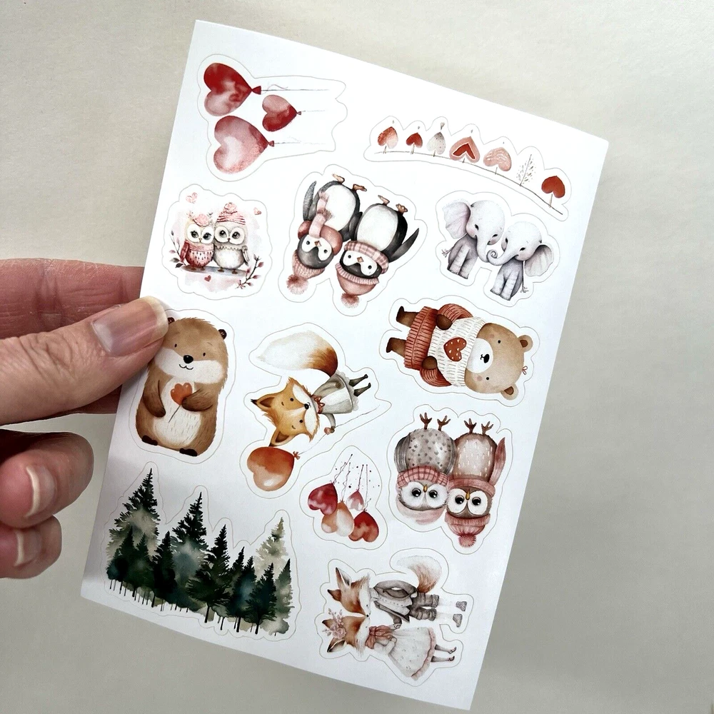 Cute animal Valentine stickers. 3 sheets. The sheets measure approx. 5 1/2 x 4 inches. These are a flat paper sticker. I have more stickers, washi tape and paper for sale. I do combine shipping. Please put all the items you want to purchase in ONE cart and then pay. I will refund you the difference in shipping after shipping label is printed. Let me know if you have any questions through eBay messaging. Thank you for stopping by!