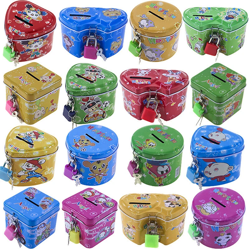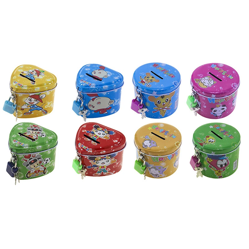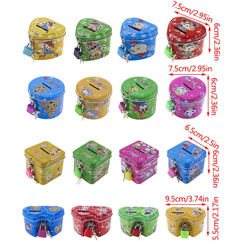 Description: Suitable for all ages: our piggy bank is perfect for kids! It teaches them the value of money, basic mathematical principles, and responsible savings. It is also very suitable for adults, to use in your house to store change and track your accumulated savings. Large enough to hold a lot of savings, An adorable way to save your baby's first coins. Suitable for home, entrance, living room, bedroom, office, office,as a little present for kids. Well-finished and high quality tinplate material,glossy and fashion, suitable for storage money coins. Features Cute, Cartoon Print design, fashion and practical, saving lots of space for the spare coins. Specifications: Product name: Children's deposit money can material: metal Size:as shown in the figure Color: as shown in the figure Package Included:1x Children's deposit money can Notes: 1. Due to the different monitor and light effect, the actual color of the item might be slightly different from the color showed on the pictures. Thank you! 2. Please allow 0.1-2cm measuring deviation due to manual measurement.