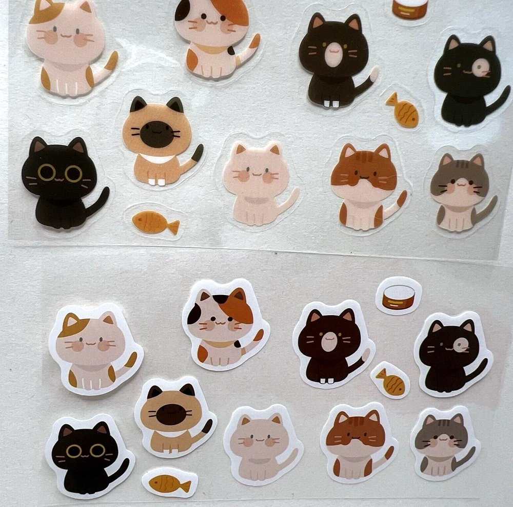 2 sticker sheets. One sheet has paper stickers and the other is PET (Images printed on PET (clear flexible plastic with a clear peel off backing.) The sticker sheets measure approx. 4 3/4 x 2 3/4 inches. I have more stickers, washi tape and paper for sale. I do combine shipping. P lease put all the items you would like to purchase in ONE cart and then pay. I will refund you the difference in shipping after shipping label is printed. Let me know if you have any questions through eBay messaging. Thank you for stopping by!