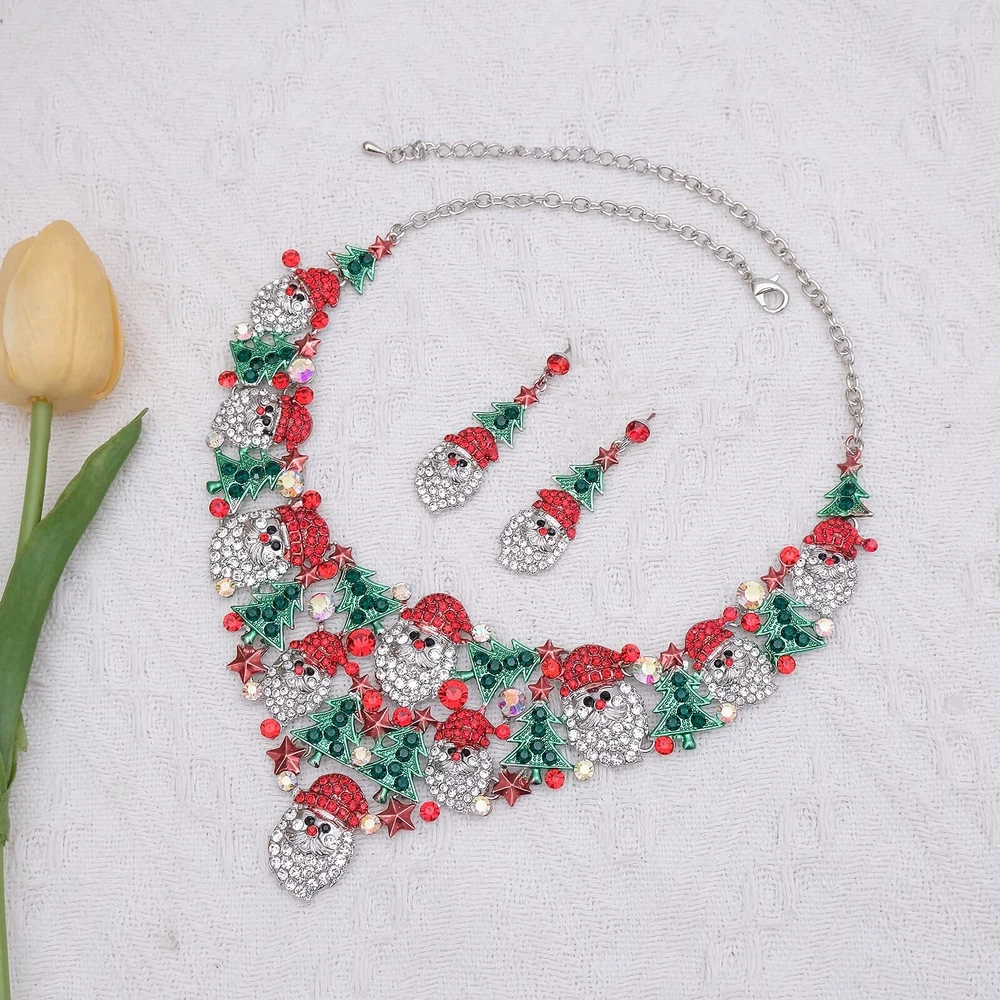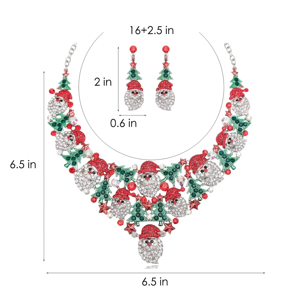 Cute Christmas Necklace Statement Santa Claus Dangle Earrings Xmas Party Costume Jewelry Sets Gift for Women Girls Product Details Color: Style A Brand: CSY MPN: 1 UPC: 780854662271 EAN: 0780854662271 Package Dimensions : 5.12 x 4.72 x 1.18 inches; 7.05 ounces Department : womens Date First Available : November 13, 2022 Brand, Seller, or Collection Name: CSY Material: Metal Gem Type: Crystal Clasp: Lobster Clasp Number of stones: 3 Metal: alloy Metal stamp: No Metal Stamp Number of stones: 10 Stone Creation Method: Simulated Stone Treatment Method: Stabilized About Delamia Jewelry Delamia jewelry are all hand-made carefully and focus on perfect details. Material selection is very important for jewelry. We only select the best quality, harmless material.Plating is vital for fashion jewelry. We have our own factory, so the plating quality and plating thickness and plating process are well controlled.With proper maintaince,this fashion jewelry can last for years. Services We are committed to providing you with the highest quality and full customer satisfaction. Not happy with goods?Any questions? Contact us via Amazon, You will get a satisfied answer. How to protect the jewelry 1Put it in an air-tight bag if you not expect to wear for a long time. 2The jewelry should be stored separately to prevent the pieces from rubbing against each other, and cause tiny scratches. 3Use the soft polishing cloth to wipe the smooth surface of jewelry. 4Don't wear it when you take a bath, swim or do housework. 1