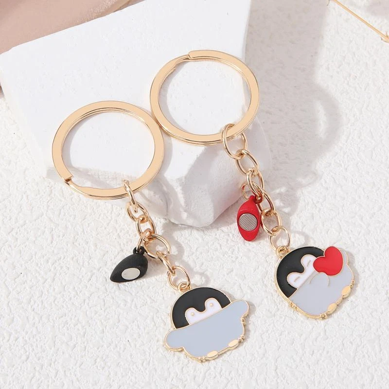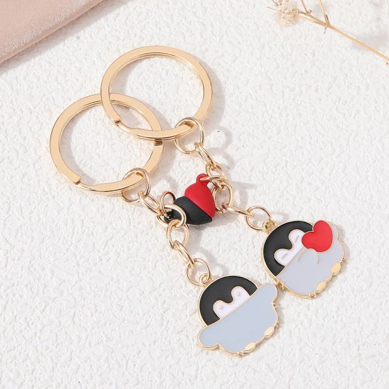 Accessorize with a touch of whimsy using this adorable Penguin Keychain, a charming addition to your bag or keys. Fashioned from durable zinc alloy with a heartwarming animal design, this trendy key chain is more than just a functional item—it's a statement piece that celebrates love and affection. The O-shaped buckle ensures your keys are secure, while the intricate detailing of the penguin brings a smile to anyone's face. Ideal for Valentine's Day or as a thoughtful gift, this key chain is a versatile accessory for women who appreciate a bit of charm in their everyday lives. The Penguin brand is synonymous with quality and style, making this metal key chain a delightful choice for those looking to add a little love to their collection. Cute Heart Magnet Penguin keychain Lovely Aniaml Key Chain For Making DIY Jewelry Accessories Necklace Handmade
