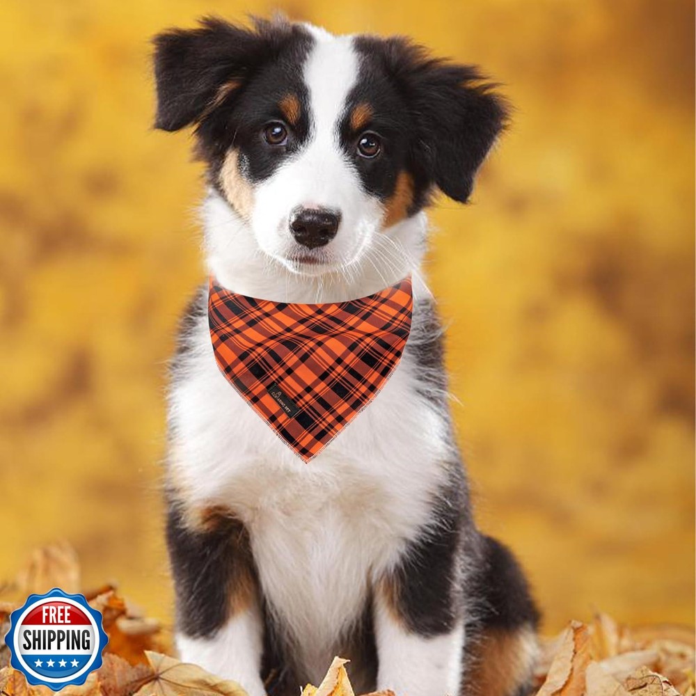 Cute Halloween Orange Grid Dog Bandana – Soft Comfortable Pet Bandana for Dogs