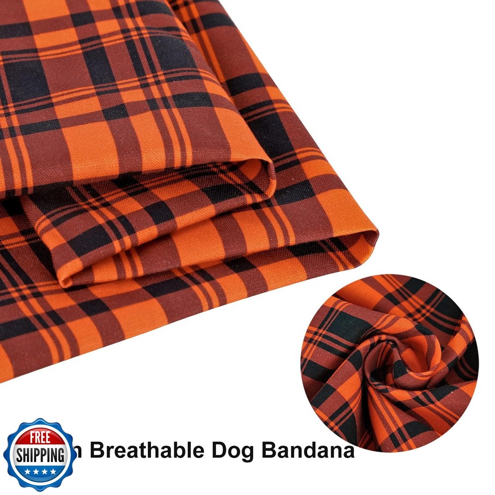 1. Absolutely love this adorable Halloween bandana for my pup! The orange grid pattern is so festive, and the soft fabric keeps my dog comfortable all day. It’s lightweight yet durable, and the sizing was perfect—just measure your dog’s neck to pick the right one. The triangle design is super cute and stays in place without irritating my dog. Easy to put on and washable, too. Perfect for fall photos or just adding a little seasonal flair to walks. My dog gets compliments every time he wears it! Great quality for the price—definitely buying more colors!