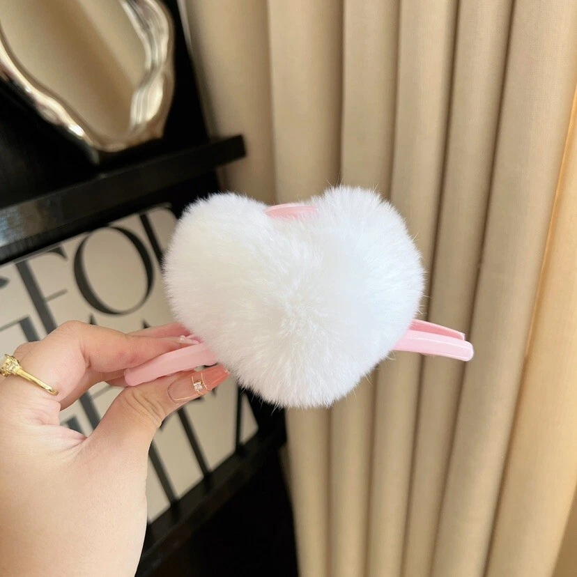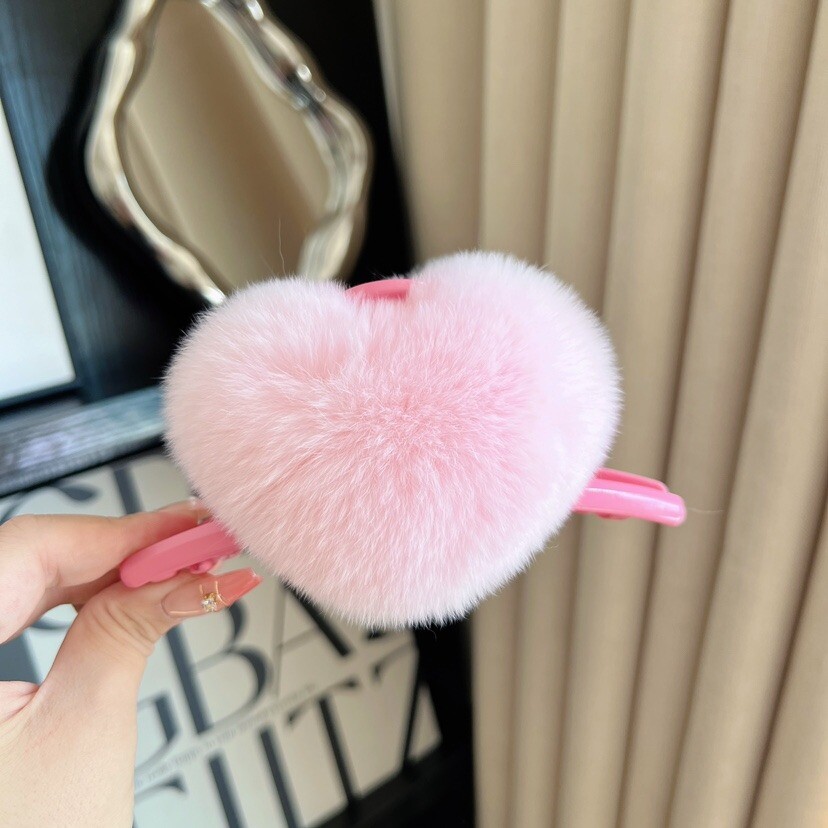 Women's Cute Real Rabbit Fur Hair Clip Persimmon Hair Claw Bobby Pin Barrette