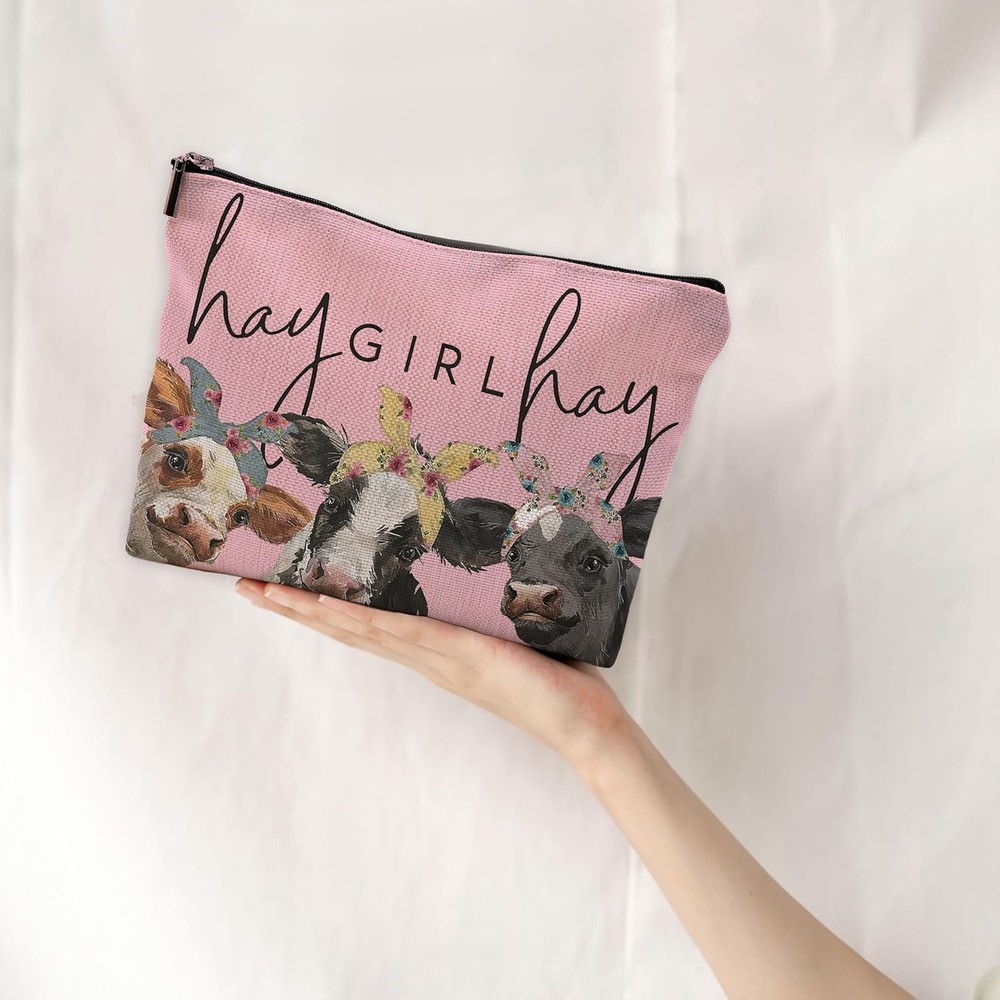 This small travel makeup bag is absolutely adorable! The cute cow print and soft pink color make it so charming, and the linen fabric feels high-quality yet lightweight. It fits perfectly in my purse and holds all my essentials without taking up much space. The material is durable and easy to clean, plus the vibrant colors stay bright. Super practical and stylish—love it!