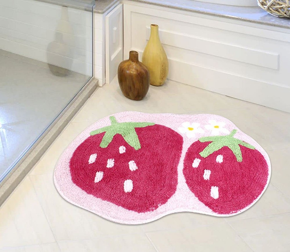 🍓Cute Bathroom Decor - The cute cartoon bath rugs add fun and appeal to your bathroom, bathtub and shower room. Size of the doormat is 20 X 31 inches.The ultra-thin thickness design of the mat prevents you from being tripped while walking, the stylish colors and funny patterns will complement any decor. 🍋Strong Absorbent - Made of thicken microfiber flocked, the carpert has strong water absorption, fast-drying, with soft and comfortable touch. No shedding, wear-resistant, our high-quality mat is a good partner for your bathroom decoration. 🍑Non Slip Design - The back of doormat is made of anti-slip rubber, odorless and with strong grip, it can be firmly fixed on the floor without slide, suitable for family with elderly and children. 🍌Easy to Clean - Machine washable. This floor mat is easy to clean, simply cleaned by pick it up and shake it. If you want to deep clean this mat, simply rinse it under the tap, let it dry, and use it again. 🍍Multiple Usage - The cute mats not only can be used as bath mats for bathroom, shower room, but also can be great home decorations for bedroom, living room, kitchen, children's room. Widely used in front door, floor, bar, parlor, hallway, dinning room, lounge, club, party, hotel, and other occasions.