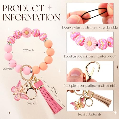 Beaded Silicone Wristlet Keychain Bracelet for Women - Stylish Key Ring Holder