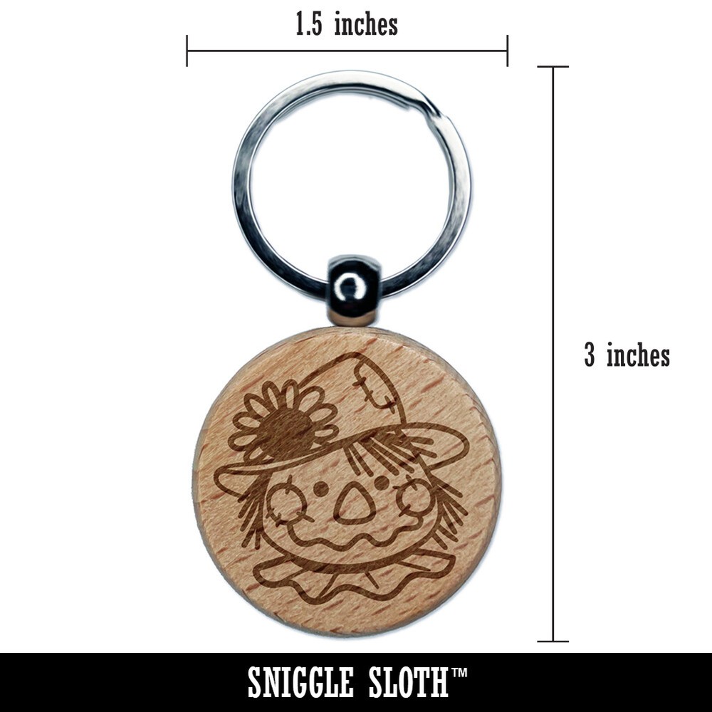 Cute Scarecrow Face Wooden Round Keychain Charm with Engraved Design