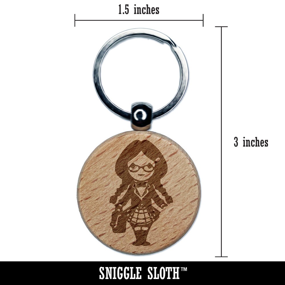 Cute Schoolgirl Pigtails Engraved Wooden Keychain Charm Tag