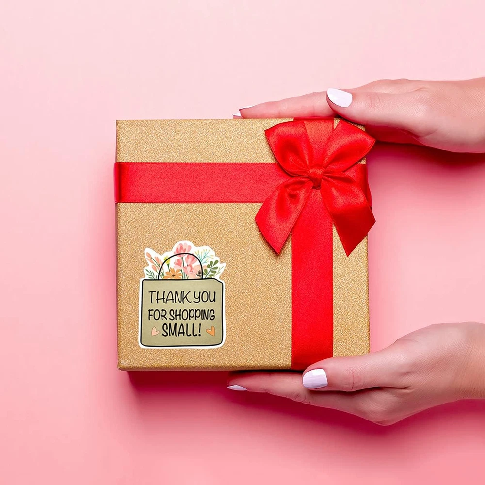 Cute Thank You for Shopping Small Stickers,Flower Basket Thank You Stickers,Hand
