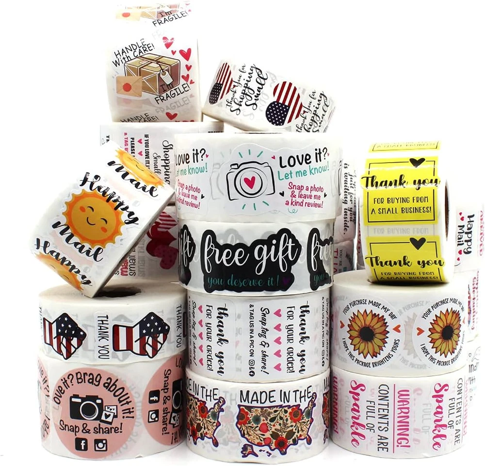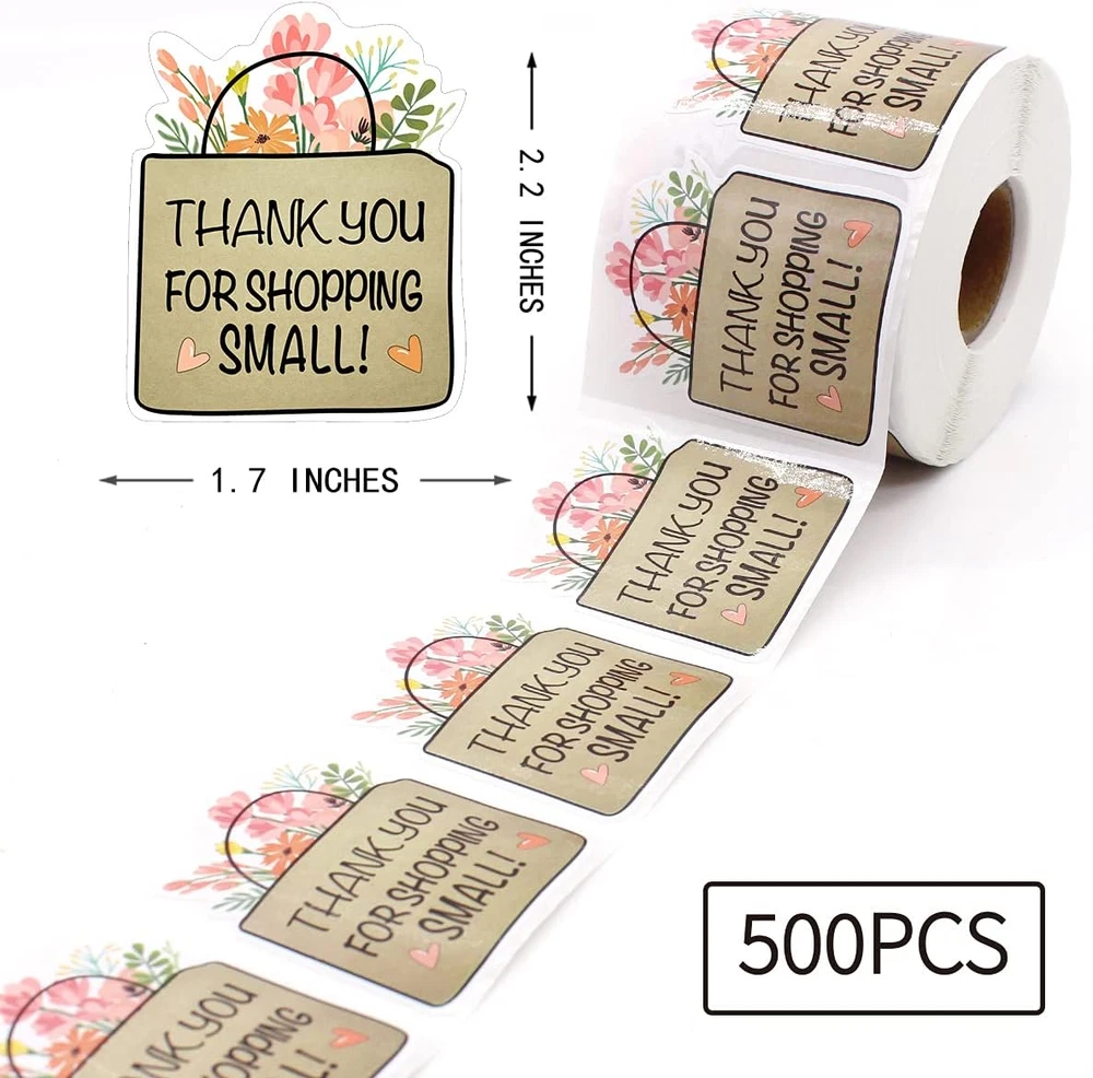 gtin13: 7445011220253 Number of Items: 500 Item Weight: 7.8 ounces Pattern: Floral UPC: 7445011220253 Surface Recommendation Plastic: Material Plastic Indoor/Outdoor Usage: Indoor Color: Thank You for Shopping Small Package Dimensions: 3.23 x 3.15 x 2.68 inches Type: Does not apply Theme: Flower Reusability: Single Use Target Audience: Businesses Water Resistance Level: Water Resistant Shape Rectangular: Unit Count 1.0 Count Recommended Uses For Product: Business Correspondence, Handmade Product Labeling, Packaging Special Feature: Water Resistant Cartoon Character: Flower Number of Pieces: 500 Item Form: Roll Finish Type: Adhesive Brand: Does not apply