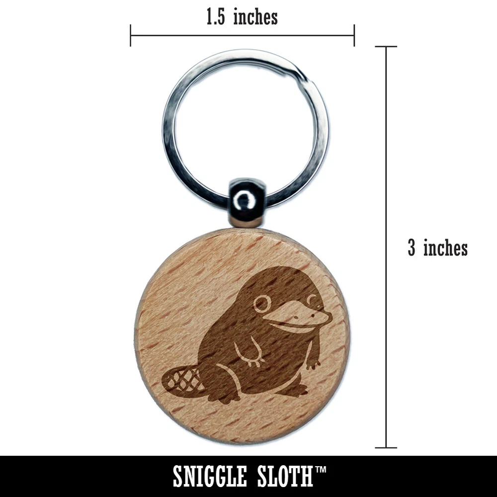 Cute Weird Duck Billed Platypus Engraved Wood Round Keychain Tag Charm