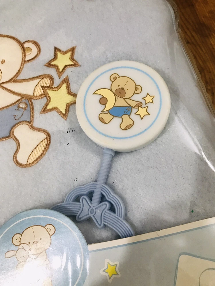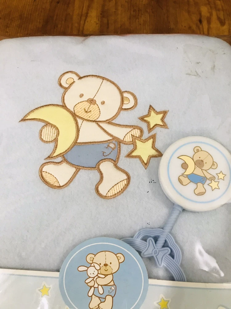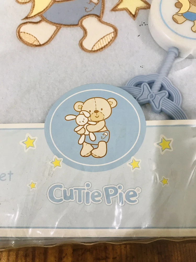Brand: Cutie Pie Features: Rattle Included Material: Fleece Personalize: No Gender: Boys Size: 30 x 40 Theme: Bear gtin13: Does not apply Personalized: No UPC: Does not apply Color: Blue To Fit: Crib Type: Crib Blanket