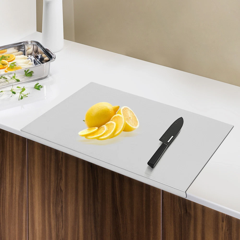 Description This is a cutting board made of stainless steel. It has an L-shaped bending design so that the cutting board will not slide easily when you are using it. The stainless steel also makes it not moldy or cracked, making it easy for you to clean. It also reduces the possibility of ingredients becoming stringy. Specification Material: Stainless Steel Product Size: 50*40*1.5cm/ 19.6*15.7*0.5in Package Size: 55*45*5cm/ 21.65*17.72*1.97in Net Weight: 2.3kg/ 5.07lbs Gross Weight: 2.6kg/ 5.73lbs Package Included 1* Stainless Steel Cutting Board Notes Please allow the slight color difference caused by the shooting light and 1-3 cm error due to manual measurement, and make sure you do not mind before ordering. Cutting Board Kitchen Stainless Steel Chopping Board w/ Front Overhang 50*40*1.5 Description Stainless Steel Chopping Cutting Board Counter Top Protector w/ Front Overhang Description This is a cutting board made of stainless steel. It has an L-shaped bending design so that the cutting board will not slide easily when you are using it. The stainless steel also makes it not moldy or cracked, making it easy for you to clean. It also reduces the possibility of ingredients becoming stringy. Specification Material: Stainless Steel Product Size: 50*40*1.5cm/ 19.6*15.7*0.5in Package Size: 55*45*5cm/ 21.65*17.72*1.97in Net Weight: 2.3kg/ 5.07lbs Gross Weight: 2.6kg/ 5.73lbs Package Included 1* Stainless Steel Cutting Board Notes Please allow the slight color difference caused by the shooting light and 1-3 cm error due to manual measurement, and make sure you do not mind before ordering. Key Features Good Material: The material of this cutting board is stainless steel, compared with other materials, it will not mold or crack, and is easy to clean. So you can use it for a long time. Free from Odor: Compared to other materials, stainless steel cutting board does not leave an odor after cutting odorous ingredients, so it does not cause them to become stringy. Unique Design: It has an L-shaped bending that allows you to snap the cutting board firmly to the edge of the table, preventing injuries from sliding the board back and forth while you're chopping. Versatile Use: Thanks to its smooth, easy-to-clean texture, you can use it not only to cut vegetables but also to knead the dough. Large Size: It can hold more food at once, so you can use it with great convenience, which can meet your daily needs. Easy to Clean: Since it is made of stainless steel, it has a smooth surface and will not mold. So you can wipe it with a towel or clean it directly with water. Thin and Light: Compared with ordinary cutting boards, it is thinner and lighter, so when it is not in use, you can just put it on the table without getting in the way. Customer Service: We aim to provide quality products and services. If you have any problems, please feel free to contact us. We will reply and solve the problem for you as soon as possible. Details L-shaped Folded Edge: This design allows the entire cutting board to be firmly fixed to the table, making it less likely to slide and easier for you to operate. Stainless Steel Material: Compared to other materials, stainless steel is not easy to mold, will not crack, is easy to clean, and does not require maintenance. It is a great material for cutting boards. Application It can be used in kitchens at home or in restaurants for cutting vegetables and kneading the dough. Welcome to Autocomponents999 Thank you for your support! If you have any questions,please feel free to contact us!!! Welcome to Autocomponents999 Thank you for your support! If you have any questions,please feel free to contact us!!! Payment Delivery details Terms of sales About us Contact us Payment We accept ebay payment 。 Fees such as import duties, taxes are not included in the item price or shipping costs. These charges are the buyer's responsibility. Delivery details Shipping: 2-9 working days to: USA Terms of sales We maintain high standards of excellence and strive for hundred percent customer satisfaction. Feedback is very important to us. We hope that you contact us immediately before you give neutral or negative feedback, so that we can address your concerns. It is impossible to address issues if we do not know about them! About us Your satis faction is our ultimate goal. We work hard to earn your trust and future business. Our certified technicians have tested each item before shipping. The unit comes with 1 year limited warranty on all manufacturing defects. a) If you receive a defective item, you may return it or ask for a discount. Please contact us within 14 days after you receive the package. b) What you returned must be intact and in its original packaging as re? u. Customer is responsible for shipping costs of the returned item. c) We will cover the cost of shipping back t with the shipping rate indicated in the registration page. We will send you a new unit or refund the full payment you paid. Thank you. Contact us Business Hour Business Hour: Monday To Friday: 8:30 AM to 5:00 PM (Beijing China time) Due to time zones, our reply to your questions may not be immediately. But within above working time, we will reply your email within 24 hours. If it's non-workdays, please kindly be patient and wait till Monday. Please contact us with ebay message. Please feel free to contact us if you have any questions. Monday To Friday: 8:30 AM to 5:00 PM (Beijing China time) Due to time zones, our reply to your questions may not be immediately. But within above working time, we will reply your email within 24 hours. If it's non-workdays, please kindly be patient and wait till Monday. Please contact us with ebay message. Please feel free to contact us if you have any questions.