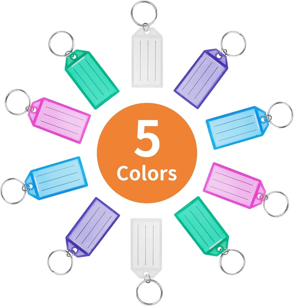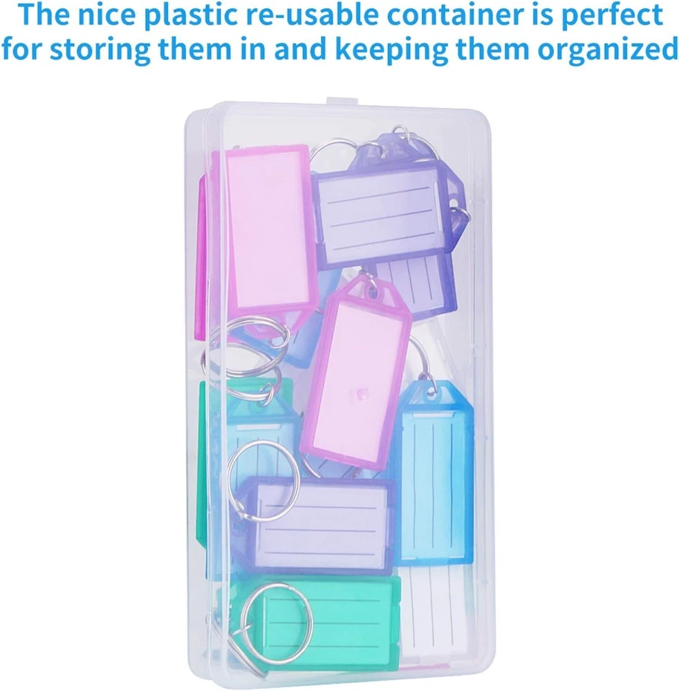Cuttte 20 Pack Plastic Key Tags with 20PCS, White, Purple, Green, Pink, Blue Product Details Closure Type: Clip Brand: Cuttte Item dimensions L x W x H: 6.9 x 0.9 x 4 inches Number of Pieces: 20 Style: Modern Shape: Rectangular Manufacturer: Cuttte Item Weight: 5 ounces Product Dimensions: 6.9 x 0.9 x 4 inches Material Type: Plastic Size: 20PCS Manufacturer Part Number: Key Tags Color: White, Purple, Green, Pink, Blue Material: Plastic Theme: Custom Special Feature: Lightweight Included Components: 1 re-usable container User friendly. The nice little plastic re-usable container is nice for storing them in and keeping them organized All good solid materials. The tags are made of hard polypropylene which is reusable, reliable and lightweight. Total size: 1.15 x 2.2inch, large label window size to write more words Each one is come with a label you can actually write on. Labels are readable from each side of the tag. And There is plastic cover for label so ink does not fade. The cover opens and closes easily. No need to remove the key ring to take out the label Great assortment. 20 Pack key tags with 5 colors, 4 for each color. Nice bright colors, great for identifying different keys for different locks Organizing keys is a key to organizing your life. These work great for name tags on keys, pets, kids backpacks, lunchboxes, childs jackets, luggage, USB drivers, or anything else that needs an ID