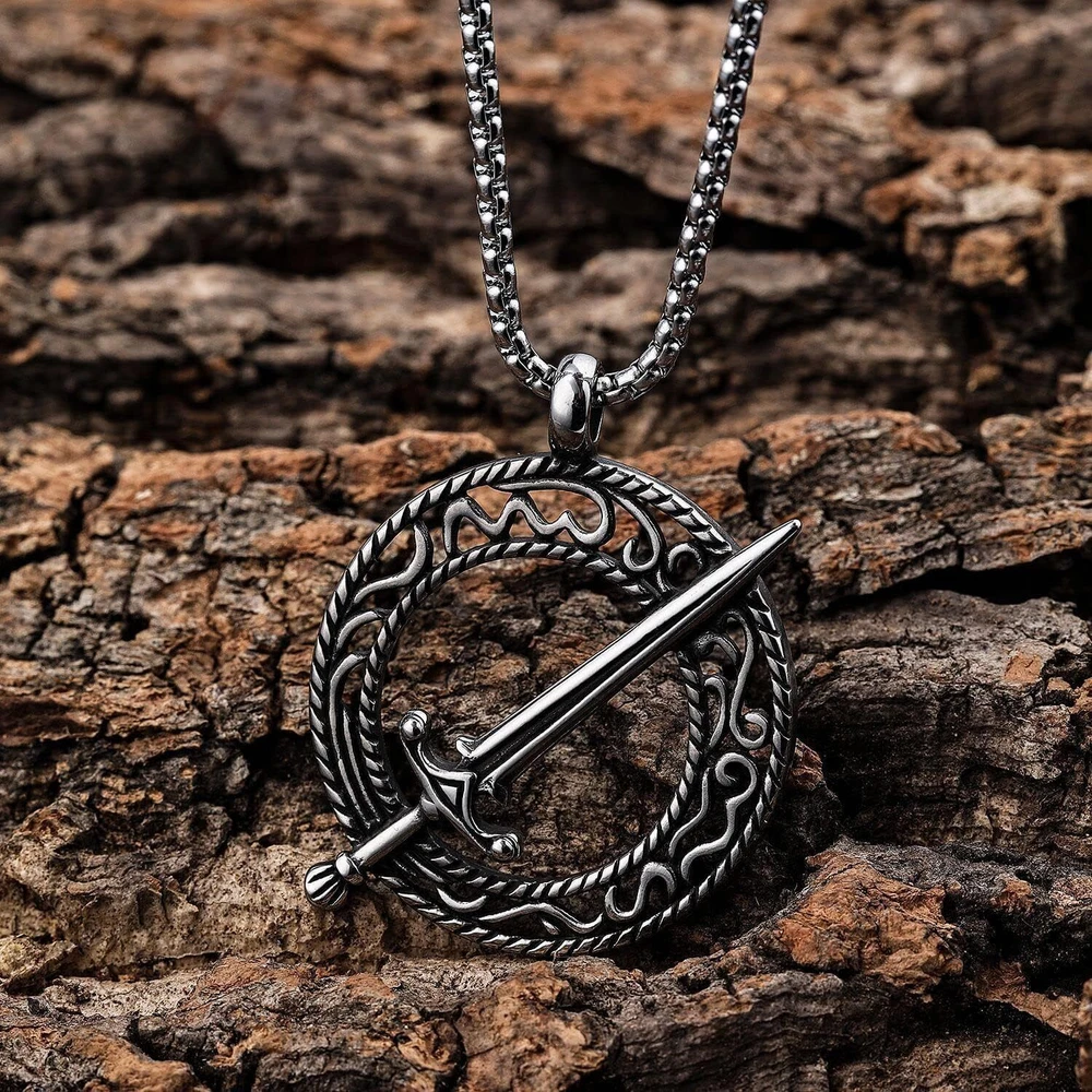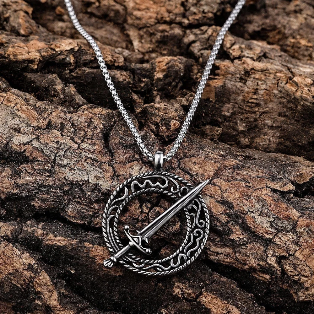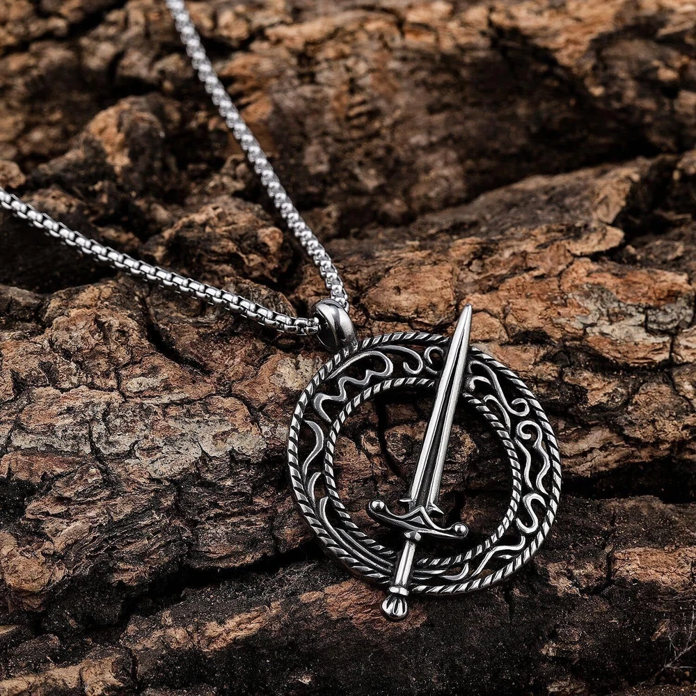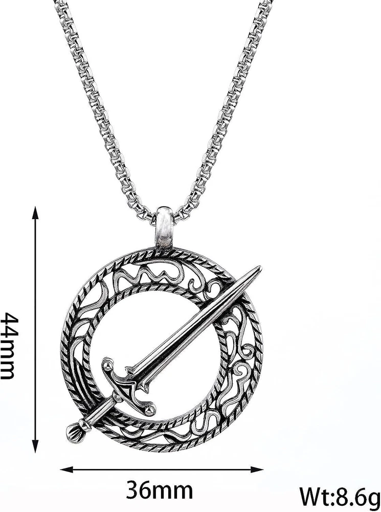 Brand: Cy trendy Condition: 100% Brand New Material: 316L Stainless Steel jewelry necklace , hypoallergenic, tarnish resistant,nickel-free,lead-free,cadmium-free,suitable for long-term wear,especially sensitive skin women. Circle Sword Pendant size: 44*36mm, Chain Length 60cm, Pendant Weight: 8.6g IDEAL GIFT: Get this stunning piece of jewelry for yourself or your loved one as a unique Valentine's Day, Christmas, birthday or anniversary gift. Metal (Pendant): 316L Stainless Steel Color: Silver Pendant Size: 44mm H x 36mm W Chain length: 60cm Total Weight: 8.6g We offer high quality rings by using GENUINE 316L Stainless Steel as material,The 316L stainless steel do not suffer corrosion,tarnish or rust when expose in wet environment, it is one of the best metal when choosing rust resistance rings and necklaces because of it's sufficiently reactive to protect itself from further attack by forming passive corrosion product layer Package include : 1 x necklace