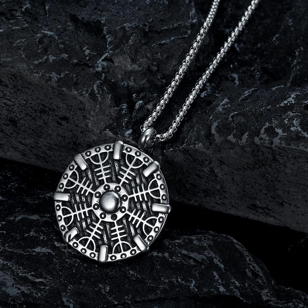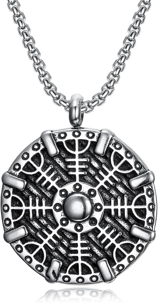 Vikings Stuff: Viking and Norse sailors used this symbol as it was believed to show the way back home and protect them from storms. It is also a spiritual compass that guides your heart and steps to make the right choices. Also if you have lost yourself and your faith, Vegvisir will help you find yourself again. Pendant Size: 39 x 32mm, Chain length: 60cm HIGH QUALITY: FaithHeart proudly provides our customers with the jewelry made from the best quality Stainless Steel. We put passion and efforts for each jewelry producing the best experiences possible for our customers. IDEAL GIFT: Get this stunning piece of jewelry for yourself or your loved one as a unique Valentine's Day, Christmas, birthday or anniversary gift. Brand : Cy trendy Metal (Pendant): 316L Stainless Steel Metal (Chain): Stainless Steel Pendant Size: 39 x 32mm Chain length: 60cmTotal Weight: 15.1g The Vikings must be very proud of their great treasure of ancient symbols. Viking symbols were not only beautiful in appearance but also in their meaning. For their life closely connected with agricultural, seafaring, and warfare activities, they always wished for luck and protection on their going. And one of the Viking most important and famous symbol was the Vegvísir or the Viking Compass. Package include : 1 x necklace