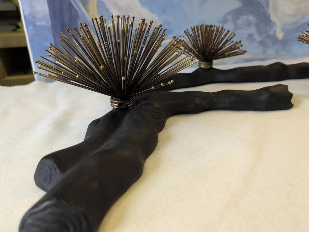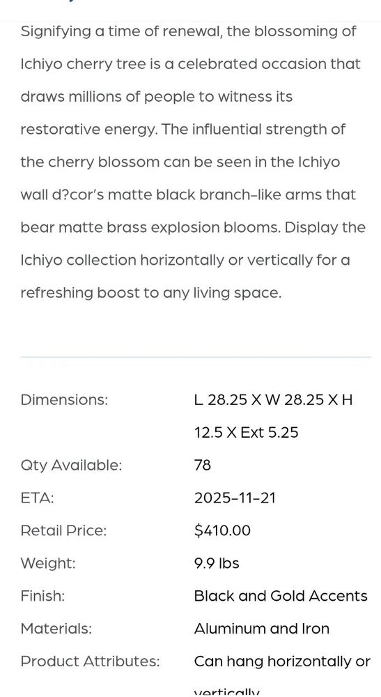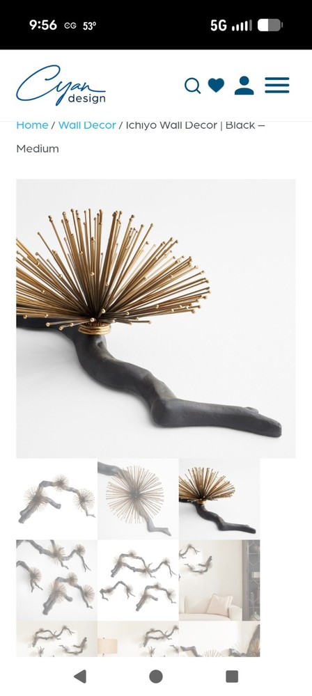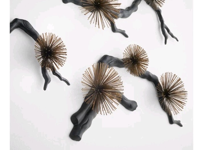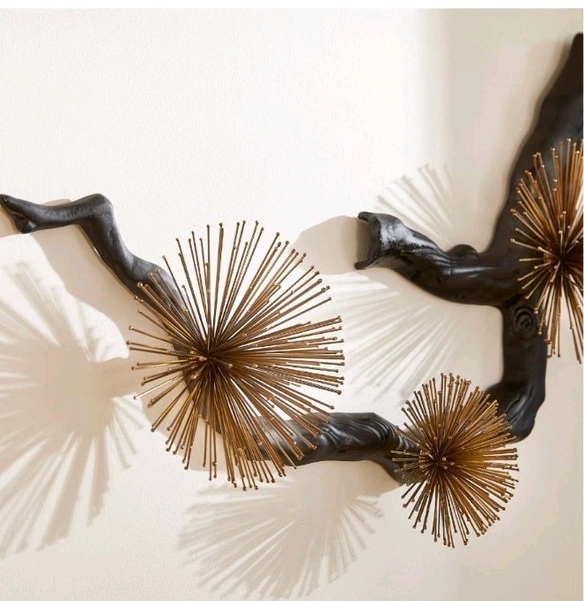 The Cyan Design NWT Black/Gold Ichiyo Blooming Cherry Tree Wall Art is a minimalist and modern dimensional wall sculpture made of metal. It features a black color with gold accents, adding a touch of elegance to any room in your home. The blooming cherry tree design and art theme make it a unique and stylish piece that can fit seamlessly into any decor style. With dimensions of 27" in length and 15" in height, this wall art is lightweight at 8 lbs and can be displayed in both orientations. Perfect for adding a focal point to your living space, this artwork is a statement piece that will catch the eye.