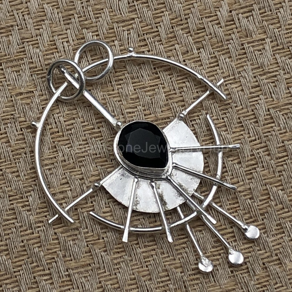 Metal: Silver Necklace Length: Not Applicable Secondary Stone: No Stone Customized: No Seller Warranty: Yes Material: Crystal, Gemstone, Stone, Metal Theme: Beauty, Bohemian, Ethnic, Healing, Love, Luck, Special Occasion, Halo, Love & Hearts Features: Engraved, Nickel-Free, Handcrafted Country/Region of Manufacture: India Type: Pendant Main Stone Color: Black Antique: No Closure: Not Applicable Chain Type: Not Applicable Wholesale: Yes Era: Undated Base Metal: Silver Color: Silver Main Stone Shape: Pear Pendant/Locket Type: Charm Setting Style: Channel-Set Main Stone: Black Onyx Brand: Unbranded Vintage: No Gemstone Clarity Grade: Eye Clean Cut Grade: Excellent Style: Pendant Pendant Shape: Pear Number of Gemstones: As Seen in Picture Signed: Yes Main Stone Treatment: Not Enhanced Metal Purity: 925 Occasion: Anniversary, Birthday, Engagement, Wedding