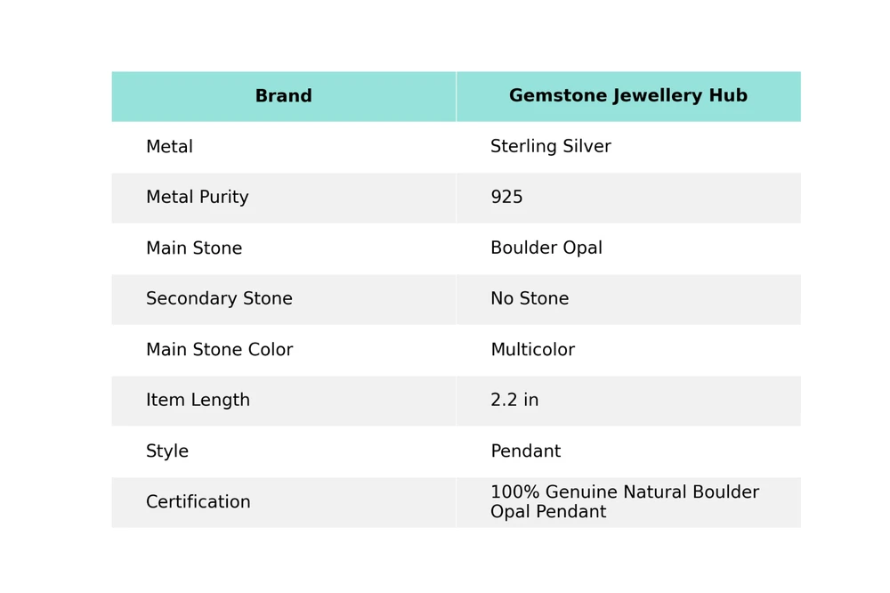 Welcome to Gemstone Treasure Hub Gift For Her 925 Sterling Silver Boulder Opal Gemstone Indian Jewelry Pendant Handmade Pendant, Sterling Silver Pendant, Boulder Opal Pendant, Handcrafted Pendant SKU : MP-4928 Gemstone : Boulder Opal Stone Shape : As Seen In Picture Metal Purity : 925 Sterling Silver Length : 2.2 Inches Width : Inches ___________________________________________________________________ Shipping Handling - Charge - Free ( Condition apply ) Handling Time - One business day . Delivery Time - 3 to 23 Days ( Various on destination ) Postage service - (A.) India Post - Below $100 order which takes 11 to 23 days . (B.) USPS, Fedex, DHL , Aramax- Order above $100 which takes 3 to 7 days . _________________________________________________________________ Returns - 1. We provide a 100% Money Back Guarantee, excluding shipping costs, within 30 days from the date of item receipt. 2. The item must not be altered or damaged in any way shape or form. 3. Upon receiving these items your payment will be refunded. 4. Kindly reach out to us via email to obtain return instructions prior to initiating the return of merchandise. 5. Please allow up to 1 business day for all returns to receivecredit. 6. Sizing does not affect the return policy. _________________________________________________________________ Payment - We accept PayPal for Payment , should made within three days once buying or winning done , in case of late information expected . _________________________________________________________________ FAQ's - Q.(A) ARE THE ITEMS YOU ARE SELLING BRAND NEW? We exclusively offer brand-new products, refraining from the sale of pre-owned jewelry. Our entire jewelry collection is composed of 100% natural, conflict-free pieces. We do not engage in the trade of imitation or lab-grown gemstones and diamonds. Q.(B) WHAT ARE YOUR BUSINESS HOURS? Our business hours are Monday to Friday, 10:00AM to 6:00PM, excluding holidays. ________________________________________________________________ Gemstone Treasure Hub is dedicated to providing customers with exceptional handmade jewelry crafted to the highest standards of quality. We operate as both connoisseurs and manufacturers of artisanal jewelry, possessing a profound expertise in the art of elevating gemstones to perfectly align with any aesthetic preference. We are pleased to offer you the opportunity to create your own jewelry collection, adorned with authentic and exquisite natural gemstones. Our team of highly skilled artisans painstakingly crafts each individual jewelry piece, ensuring the creation of products with a unique identity that feature genuine gemstones. The jewelry articles presented on our website accurately depict the precise pieces that you will receive.