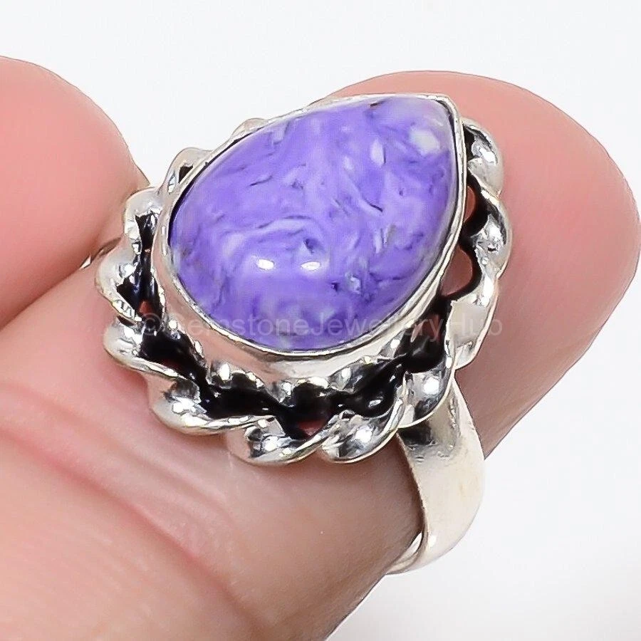 Cyber Monday Deal 925 Sterling Silver charoite Stone Statement Wife Ring Size 6