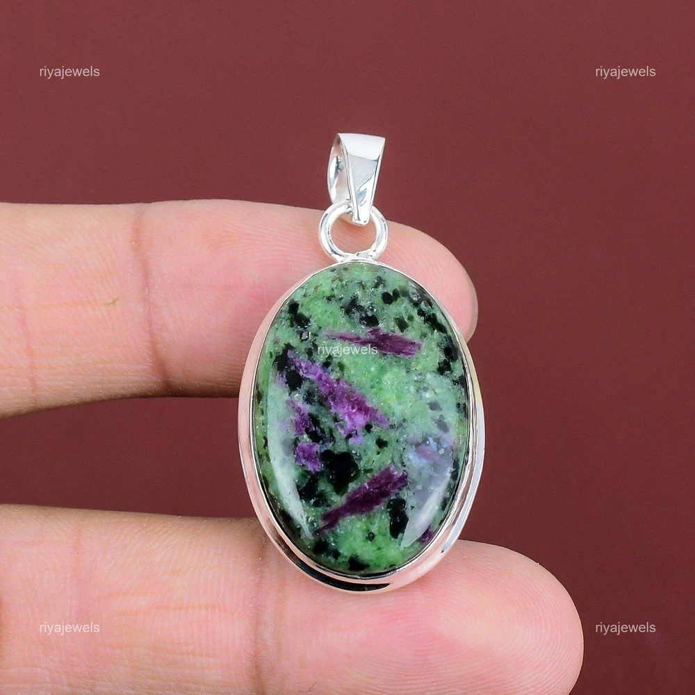 Note : Due to the natural formation of this gemstone. Slight variation in design and color are to be expected. Welcome to Riyajewels Natural Ruby Zoisite Gemstone Pendant Green 925 Sterling Silver Indian Jewelry Handmade Pendant, Sterling Silver Pendant, Ruby Zoisite Pendant, Handcrafted Pendant SKU : PP-1391 Gemstone : Ruby Zoisite Stone Shape : Oval Metal Purity : 925 Sterling Silver Length : 48 Millimetres Width : 23 Millimetres Silver Jewelry is a popular choice for many people due to its unique properties and numerous benefits. Here are some of the key properties and benefits of wearing silver jewelry: Properties: Durability: Silver is a durable metal that can withstand regular wear and tear. Malleability: Silver is highly malleable, which means it can be easily shaped and molded into various designs. Conductivity: Silver is an excellent conductor of heat and electricity. Anti-bacterial: Silver has natural anti-bacterial properties, which can help prevent the growth of harmful bacteria. Benefits: Aesthetic appeal: Silver jewelry is known for its beauty and versatility, and can be worn with a variety of outfits and styles. Hypoallergenic: Silver is generally hypoallergenic, which means it is unlikely to cause an allergic reaction in most people. Healing properties: Some people believe that wearing silver jewelry can help with various physical and emotional conditions, such as arthritis, anxiety, and depression. Spiritual significance: Silver has been used in various cultures for its spiritual and symbolic significance, and wearing silver jewelry can help to connect with these traditions. Investment value: Silver is a precious metal that retains its value over time, and investing in silver jewelry can be a smart financial decision. Overall, silver jewelry offers a unique combination of beauty, durability, and benefits, making it a popular choice for people around the world. For Mother's Day Gift For Father's Day Gift For Promise For Valentine' Day For Halloween Party For Christmas Day Gift For New Year Party For Mom For Her If you can't find the information you need or need some advice for your design? Feel free to contact us. We are fast to reply :) All our work is made by hand with Love and Care in our workshop Thank you so much for visiting and hope you enjoy shopping with us Riyajewels is dedicated to providing customers with high-quality sterling silver jewelry. As a manufacturer of handmade jewelry, we offer an extensive range of silver gemstone jewelry that demonstrates our exceptional craftsmanship. We are skilled in adorning gemstones to complement any style, and we give you the freedom to design your own jewelry collection with dazzling, natural, and genuine gemstones. Our talented craftsmen carefully handcraft each jewelry piece, ensuring that it is unique and made with authentic gemstones.