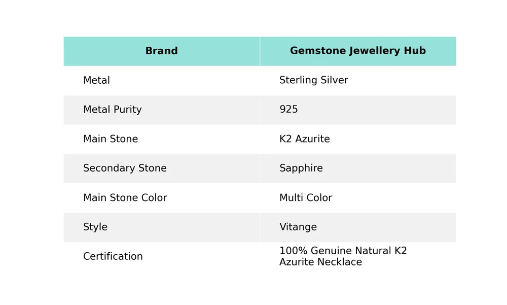 Welcome to Gemstone Treasure Hub K2 Azurite Gemstone Vitange Adjustable Necklace 925 Sterling Silver Jewelry Handmade Necklace, Sterling Silver Necklace, k2 azurite Necklace, Handcrafted Necklace SKU : MN-2845 Gemstone : k2 azurite Stone Shape : As Seen In Picture Metal Purity : 925 Sterling Silver Necklace Length: 18 Inches Adjustable : Yes ___________________________________________________________________ Shipping Handling - Charge - Free ( Condition apply ) Handling Time - One business day . Delivery Time - 3 to 23 Days ( Various on destination ) Postage service - (A.) India Post - Below $100 order which takes 11 to 23 days . (B.) USPS, Fedex, DHL , Aramax- Order above $100 which takes 3 to 7 days . _________________________________________________________________ Returns - 1. We provide a 100% Money Back Guarantee, excluding shipping costs, within 30 days from the date of item receipt. 2. The item must not be altered or damaged in any way shape or form. 3. Upon receiving these items your payment will be refunded. 4. Kindly reach out to us via email to obtain return instructions prior to initiating the return of merchandise. 5. Please allow up to 1 business day for all returns to receivecredit. 6. Sizing does not affect the return policy. _________________________________________________________________ Payment - We accept PayPal for Payment , should made within three days once buying or winning done , in case of late information expected . _________________________________________________________________ FAQ's - Q.(A) ARE THE ITEMS YOU ARE SELLING BRAND NEW? We exclusively offer brand-new products, refraining from the sale of pre-owned jewelry. Our entire jewelry collection is composed of 100% natural, conflict-free pieces. We do not engage in the trade of imitation or lab-grown gemstones and diamonds. Q.(B) WHAT ARE YOUR BUSINESS HOURS? Our business hours are Monday to Friday, 10:00AM to 6:00PM, excluding holidays. ________________________________________________________________ Gemstone Treasure Hub is dedicated to providing customers with exceptional handmade jewelry crafted to the highest standards of quality. We operate as both connoisseurs and manufacturers of artisanal jewelry, possessing a profound expertise in the art of elevating gemstones to perfectly align with any aesthetic preference. We are pleased to offer you the opportunity to create your own jewelry collection, adorned with authentic and exquisite natural gemstones. Our team of highly skilled artisans painstakingly crafts each individual jewelry piece, ensuring the creation of products with a unique identity that feature genuine gemstones. The jewelry articles presented on our website accurately depict the precise pieces that you will receive.
