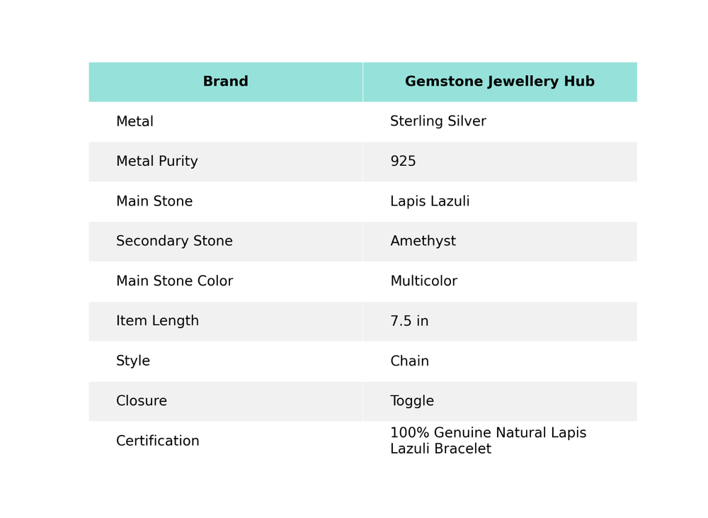 Welcome to Gemstone Treasure Hub Anniversary Gift For Her Lapis Lazuli Gemstone Chain Bracelet 925 Silver Handmade Bracelet, Sterling Silver Bracelet, Lapis Lazuli Bracelet, Handcrafted Bracelet SKU : PB7686-8 Gemstone : Lapis Lazuli Stone Shape : As Seen In Picture Metal Purity : 925 Sterling Silver Bracelet Length : 7.5 Inches Adjustable : ___________________________________________________________________ Shipping Handling - Charge - Free ( Condition apply ) Handling Time - One business day . Delivery Time - 3 to 23 Days ( Various on destination ) Postage service - (A.) India Post - Below $100 order which takes 11 to 23 days . (B.) USPS, Fedex, DHL , Aramax- Order above $100 which takes 3 to 7 days . _________________________________________________________________ Returns - 1. We provide a 100% Money Back Guarantee, excluding shipping costs, within 30 days from the date of item receipt. 2. The item must not be altered or damaged in any way shape or form. 3. Upon receiving these items your payment will be refunded. 4. Kindly reach out to us via email to obtain return instructions prior to initiating the return of merchandise. 5. Please allow up to 1 business day for all returns to receivecredit. 6. Sizing does not affect the return policy. _________________________________________________________________ Payment - We accept PayPal for Payment , should made within three days once buying or winning done , in case of late information expected . _________________________________________________________________ FAQ's - Q.(A) ARE THE ITEMS YOU ARE SELLING BRAND NEW? We exclusively offer brand-new products, refraining from the sale of pre-owned jewelry. Our entire jewelry collection is composed of 100% natural, conflict-free pieces. We do not engage in the trade of imitation or lab-grown gemstones and diamonds. Q.(B) WHAT ARE YOUR BUSINESS HOURS? Our business hours are Monday to Friday, 10:00AM to 6:00PM, excluding holidays. ________________________________________________________________ Gemstone Treasure Hub is dedicated to providing customers with exceptional handmade jewelry crafted to the highest standards of quality. We operate as both connoisseurs and manufacturers of artisanal jewelry, possessing a profound expertise in the art of elevating gemstones to perfectly align with any aesthetic preference. We are pleased to offer you the opportunity to create your own jewelry collection, adorned with authentic and exquisite natural gemstones. Our team of highly skilled artisans painstakingly crafts each individual jewelry piece, ensuring the creation of products with a unique identity that feature genuine gemstones. The jewelry articles presented on our website accurately depict the precise pieces that you will receive.