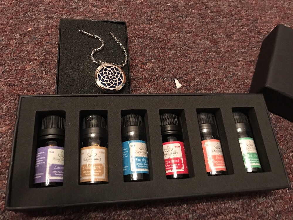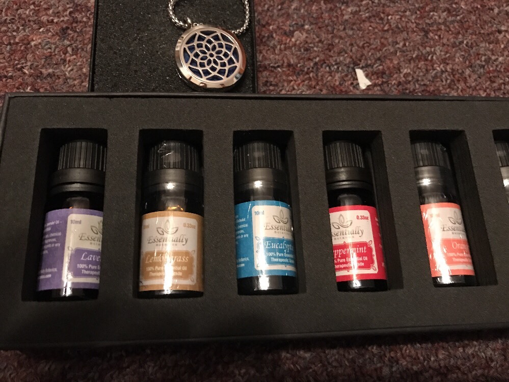 This essential oil set is amazing! The scents are pure and long-lasting, and the diffuser necklace is stylish and works perfectly. Even though the box has some wear, the oils and necklace are in great condition. Highly recommend for anyone who loves aromatherapy on the go!