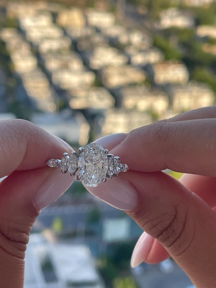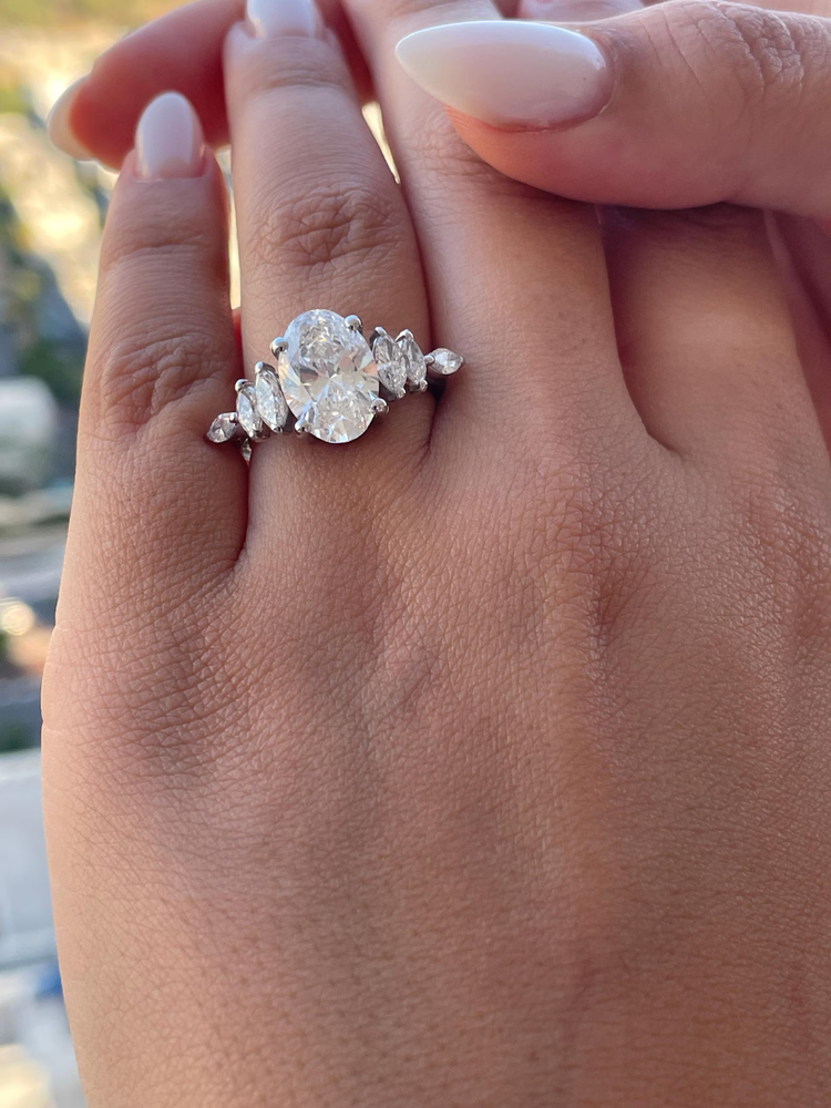 The Cyber Monday Sale offers a stunning 3.00 Carat Oval Lab Grown Diamond Women's Ring in 14k White Gold. This unique and beautiful ring is perfect for special occasions such as Mother's Day, weddings, anniversaries, birthdays, and Valentine's Day. The ring features a round white lab grown diamond as the main stone, with a solitaire setting style and engraved detail. Made with nickel-free materials and authenticated by GIA/IGI Certified, this ring is not only a stunning piece of fine jewelry but also a thoughtful and personalized gift for your loved one.