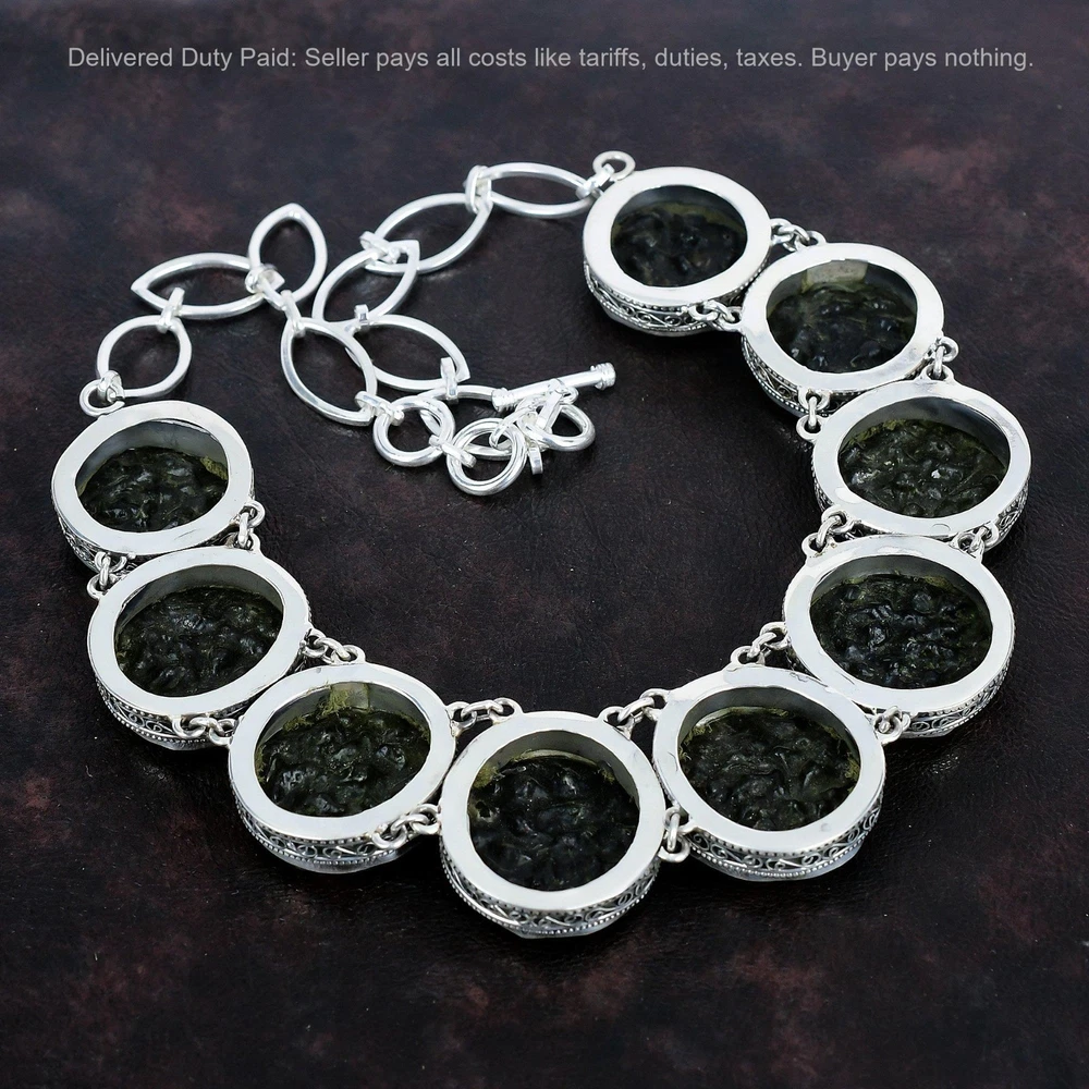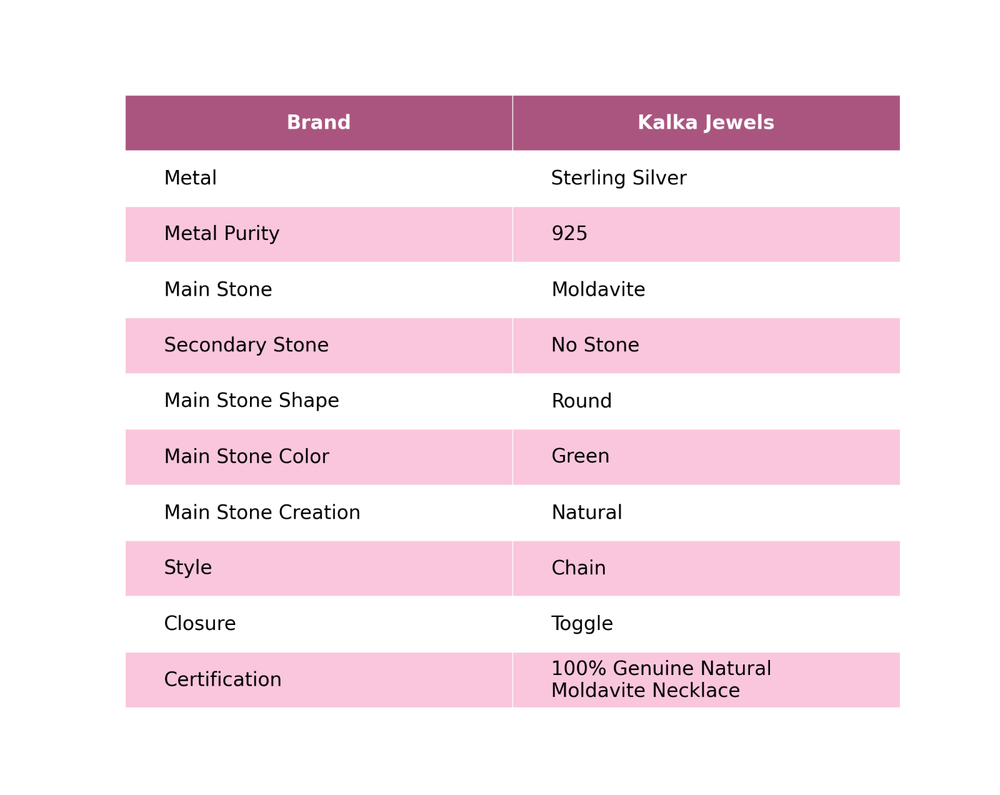 Note : Due to the natural formation of this gemstone. Slight variation in design and color are to be expected. Welcome to Kalka Jewels Cyber Monday Sale 925 Silver Natural Moldavite Sister Vintage New Chain Necklace Handmade Necklace, Sterling Silver Necklace, Moldavite Necklace, Handcrafted Necklace SKU : KN-1354 Gemstone : Moldavite Stone Shape : Round Metal Purity : 925 Sterling Silver Necklace Length : 18 Inches Adjustable : Yes Silver Jewelry is a popular choice for many people due to its unique properties and numerous benefits. Here are some of the key properties and benefits of wearing silver jewelry: Properties: Durability: Silver is a durable metal that can withstand regular wear and tear. Malleability: Silver is highly malleable, which means it can be easily shaped and molded into various designs. Conductivity: Silver is an excellent conductor of heat and electricity. Anti-bacterial: Silver has natural anti-bacterial properties, which can help prevent the growth of harmful bacteria. Benefits: Aesthetic appeal: Silver jewelry is known for its beauty and versatility, and can be worn with a variety of outfits and styles. Hypoallergenic: Silver is generally hypoallergenic, which means it is unlikely to cause an allergic reaction in most people. Healing properties: Some people believe that wearing silver jewelry can help with various physical and emotional conditions, such as arthritis, anxiety, and depression. Spiritual significance: Silver has been used in various cultures for its spiritual and symbolic significance, and wearing silver jewelry can help to connect with these traditions. Investment value: Silver is a precious metal that retains its value over time, and investing in silver jewelry can be a smart financial decision. Overall, silver jewelry offers a unique combination of beauty, durability, and benefits, making it a popular choice for people around the world. For Mother's Day Gift For Father's Day Gift For Promise For Valentine' Day For Halloween Party For Christmas Day Gift For New Year Party For Mom For Her If you can't find the information you need or need some advice for your design? Feel free to contact us. We are fast to reply :) All our work is made by hand with Love and Care in our workshop Thank you so much for visiting and hope you enjoy shopping with us Kalka Jewels is dedicated to providing customers with high-quality sterling silver jewelry. As a manufacturer of handmade jewelry, we offer an extensive range of silver gemstone jewelry that demonstrates our exceptional craftsmanship. We are skilled in adorning gemstones to complement any style, and we give you the freedom to design your own jewelry collection with dazzling, natural, and genuine gemstones. Our talented craftsmen carefully handcraft each jewelry piece, ensuring that it is unique and made with authentic gemstones.