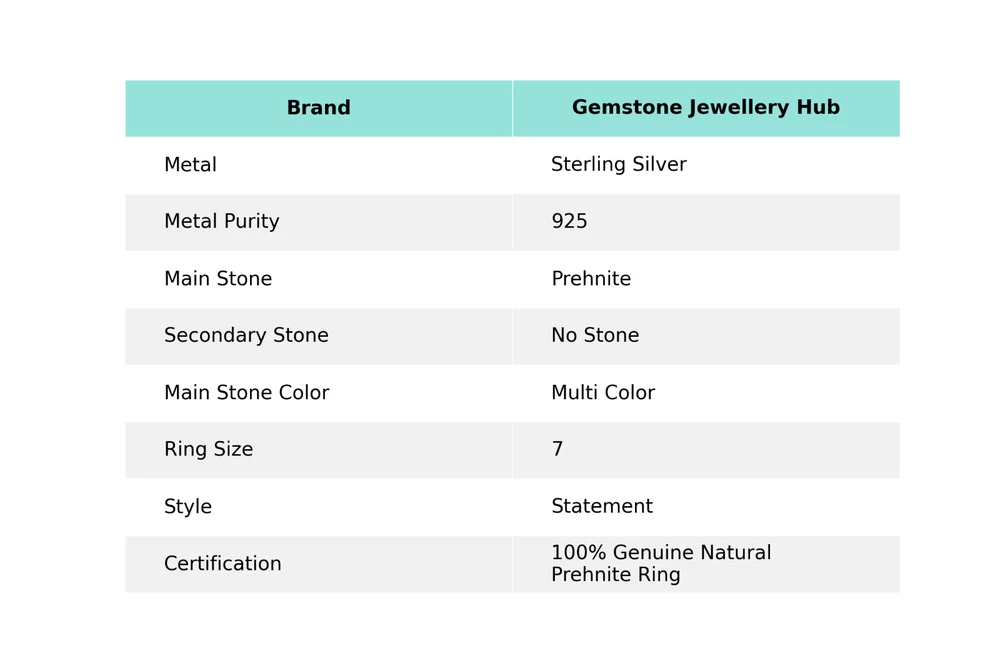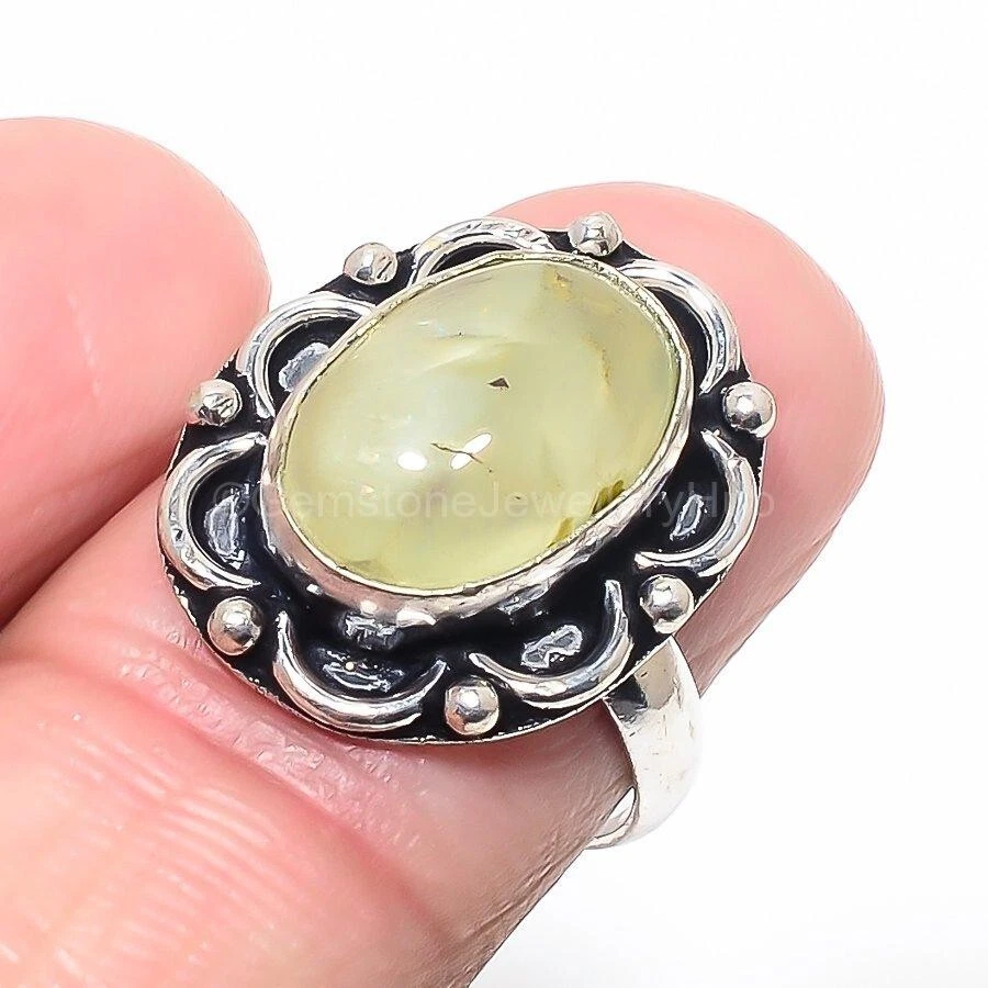 Welcome to Gemstone Treasure Hub Prehnite Gemstone Statement Ring Size 7 925 Sterling Silver Jewelry For Women Handmade Ring, Sterling Silver Ring, prehnite Ring, Handcrafted Ring SKU : MR-4609 Gemstone : prehnite Stone Shape : As Seen In Picture Metal Purity : 925 Sterling Silver Ring Size : 7 US Adjustable : _________________________________________________________________ Shipping Handling - Charge - Free ( Condition apply ) Handling Time - One business day . Delivery Time - 3 to 23 Days ( Various on destination ) Postage service - (A.) India Post - Below $100 order which takes 11 to 23 days . (B.) USPS, Fedex, DHL , Aramax- Order above $100 which takes 3 to 7 days . _________________________________________________________________ Returns - 1. We provide a 100% Money Back Guarantee, excluding shipping costs, within 30 days from the date of item receipt. 2. The item must not be altered or damaged in any way shape or form. 3. Upon receiving these items your payment will be refunded. 4. Kindly reach out to us via email to obtain return instructions prior to initiating the return of merchandise. 5. Please allow up to 1 business day for all returns to receivecredit. 6. Sizing does not affect the return policy. _________________________________________________________________ Payment - We accept PayPal for Payment , should made within three days once buying or winning done , in case of late information expected . _________________________________________________________________ FAQ's - Q.(A) ARE THE ITEMS YOU ARE SELLING BRAND NEW? We exclusively offer brand-new products, refraining from the sale of pre-owned jewelry. Our entire jewelry collection is composed of 100% natural, conflict-free pieces. We do not engage in the trade of imitation or lab-grown gemstones and diamonds. Q.(B) WHAT ARE YOUR BUSINESS HOURS? Our business hours are Monday to Friday, 10:00AM to 6:00PM, excluding holidays. ________________________________________________________________ Gemstone Treasure Hub is dedicated to providing customers with exceptional handmade jewelry crafted to the highest standards of quality. We operate as both connoisseurs and manufacturers of artisanal jewelry, possessing a profound expertise in the art of elevating gemstones to perfectly align with any aesthetic preference. We are pleased to offer you the opportunity to create your own jewelry collection, adorned with authentic and exquisite natural gemstones. Our team of highly skilled artisans painstakingly crafts each individual jewelry piece, ensuring the creation of products with a unique identity that feature genuine gemstones. The jewelry articles presented on our website accurately depict the precise pieces that you will receive.